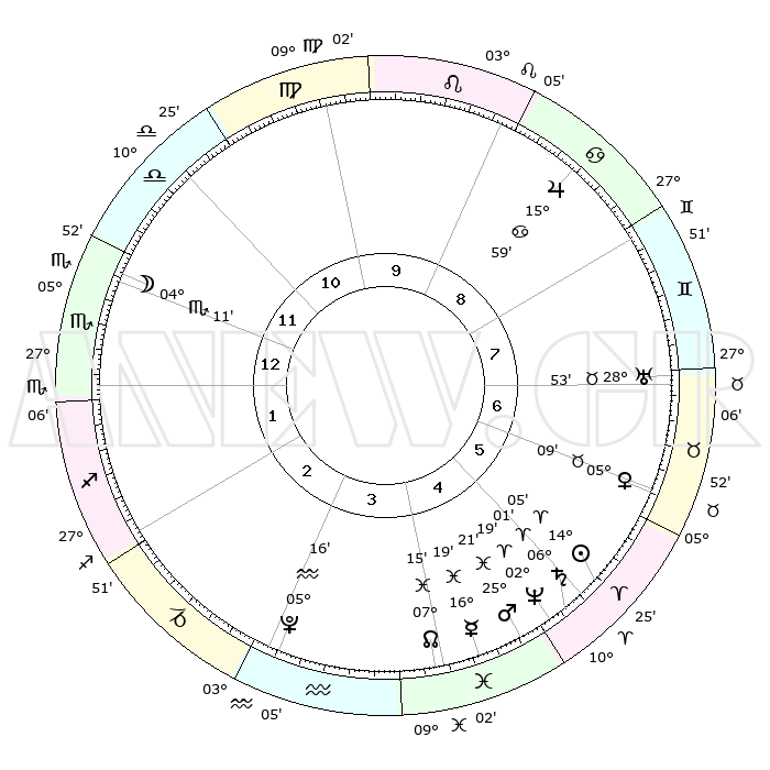 | | ΘΕΣΕΙΣ ΠΛΑΝΗΤΩΝ ΑΣΤΡΟΛΟΓΙΚΟΥ ΧΑΡΤΗ ΤΗΣ ΣΤΙΓΜΗΣ ΑΥΤΗΣ | | | | Πλανήτης | Ζώδιο | Μοίρες | Δεκαήμ. | Σε οίκο | Απόκλιση | | Ακμές των οίκων | | Ηλιος | Κριός | 14°02' | Δεύτερο | 5 | 05 N 32 | | 1ος | 10°36' | Σκορπιός | | Σελήνη | Σκορπιός | 03°29' | Πρώτο | 12 | 16 S 39 | | 2ος | 09°43' | Τοξότης | | Ερμής | Ιχθείς | 16°16' | Δεύτερο | 4 | 06 S 59 | | 3ος | 12°41' | Αιγόκερως | | Αφροδίτη | Ταύρος | 05°05' | Πρώτο | 6 | 12 N 54 | | 4ος | 17°38' | Υδροχόος | | Αρης | Ιχθείς | 25°18' | Τρίτο | 5 | 02 S 49 | | 5ος | 20°17' | Ιχθείς | | Δίας | Καρκίνος | 15°58' | Δεύτερο | 9 | 22 N 51 | | 6ος | 17°51' | Κριός | | Κρόνος | Κριός | 06°00' | Πρώτο | 5 | 00 N 26 | | 7ος | 10°36' | Ταύρος | | Ουρανός | Ταύρος | 28°53' | Τρίτο | 7 | 19 N 44 | | 8ος | 09°43' | Δίδυμοι | | Ποσειδώνας | Κριός | 02°19' | Πρώτο | 5 | 00 S 17 | | 9ος | 12°41' | Καρκίνος | | Πλούτωνας | Υδροχόος | 05°16' | Πρώτο | 3 | 22 S 47 | | 10ος | 17°38' | Λέων | | Β. Δεσμός | Ιχθείς | 07°15' | Πρώτο | 4 | 08 S 51 | | 11ος | 20°17' | Παρθένος | | Ωροσκόπος | Σκορπιός | 10°36' | Δεύτερο | | | 12ος | 17°51' | Ζυγός | | Μεσουράνημα | Λέων | 17°38' | Δεύτερο | | | |