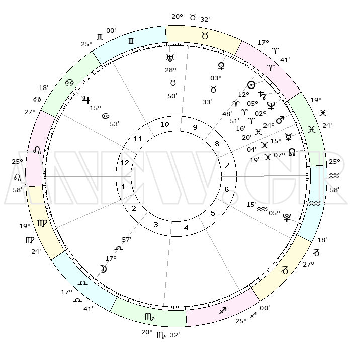| | ΘΕΣΕΙΣ ΠΛΑΝΗΤΩΝ ΑΣΤΡΟΛΟΓΙΚΟΥ ΧΑΡΤΗ ΤΗΣ ΣΤΙΓΜΗΣ ΑΥΤΗΣ | | | | Πλανήτης | Ζώδιο | Μοίρες | Δεκαήμ. | Σε οίκο | Απόκλιση | | Ακμές των οίκων | | Ηλιος | Κριός | 12°45' | Δεύτερο | 9 | 05 N 02 | | 1ος | 09°16' | Λέων | | Σελήνη | Ζυγός | 17°14' | Δεύτερο | 3 | 09 S 45 | | 2ος | 01°02' | Παρθένος | | Ερμής | Ιχθείς | 15°01' | Δεύτερο | 8 | 07 S 19 | | 3ος | 27°20' | Παρθένος | | Αφροδίτη | Ταύρος | 03°28' | Πρώτο | 10 | 12 N 19 | | 4ος | 29°21' | Ζυγός | | Αρης | Ιχθείς | 24°17' | Τρίτο | 8 | 03 S 13 | | 5ος | 04°60' | Τοξότης | | Δίας | Καρκίνος | 15°53' | Δεύτερο | 12 | 22 N 51 | | 6ος | 09°15' | Αιγόκερως | | Κρόνος | Κριός | 05°51' | Πρώτο | 9 | 00 N 22 | | 7ος | 09°16' | Υδροχόος | | Ουρανός | Ταύρος | 28°50' | Τρίτο | 10 | 19 N 44 | | 8ος | 01°02' | Ιχθείς | | Ποσειδώνας | Κριός | 02°16' | Πρώτο | 9 | 00 S 18 | | 9ος | 27°20' | Ιχθείς | | Πλούτωνας | Υδροχόος | 05°14' | Πρώτο | 6 | 22 S 47 | | 10ος | 29°21' | Κριός | | Β. Δεσμός | Ιχθείς | 07°19' | Πρώτο | 8 | 08 S 49 | | 11ος | 04°60' | Δίδυμοι | | Ωροσκόπος | Λέων | 09°16' | Πρώτο | | | 12ος | 09°15' | Καρκίνος | | Μεσουράνημα | Κριός | 29°21' | Τρίτο | | | |