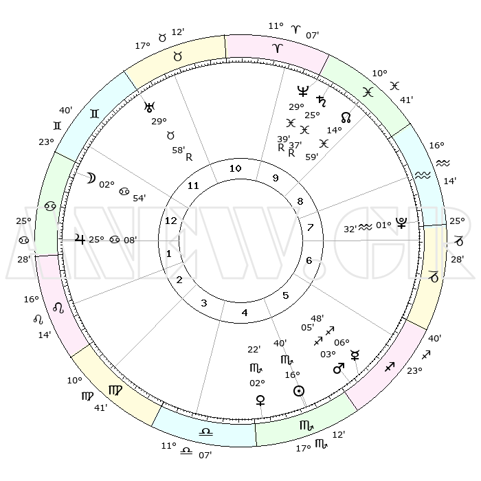 | | ΘΕΣΕΙΣ ΠΛΑΝΗΤΩΝ ΑΣΤΡΟΛΟΓΙΚΟΥ ΧΑΡΤΗ ΤΗΣ ΣΤΙΓΜΗΣ ΑΥΤΗΣ | | | | Πλανήτης | Ζώδιο | Μοίρες | Δεκαήμ. | Σε οίκο | Απόκλιση | | Ακμές των οίκων | | Ηλιος | Σκορπιός | 16°36' | Δεύτερο | 5 | 16 S 48 | | 1ος | 03°18' | Καρκίνος | | Σελήνη | Καρκίνος | 01°51' | Πρώτο | 12 | 28 N 19 | | 2ος | 23°55' | Καρκίνος | | Ερμής | Τοξότης | 06°47' | Πρώτο | 6 | 23 S 54 | | 3ος | 15°57' | Λέων | | Αφροδίτη | Σκορπιός | 02°17' | Πρώτο | 5 | 11 S 00 | | 4ος | 12°48' | Παρθένος | | Αρης | Τοξότης | 03°02' | Πρώτο | 6 | 21 S 13 | | 5ος | 17°14' | Ζυγός | | Δίας | Καρκίνος | 25°08' | Τρίτο | 2 | 21 N 12 | | 6ος | 26°58' | Σκορπιός | | Κρόνος | Ιχθείς | 25°37'R | Τρίτο | 10 | 03 S 59 | | 7ος | 03°18' | Αιγόκερως | | Ουρανός | Ταύρος | 29°58'R | Τρίτο | 12 | 19 N 56 | | 8ος | 23°55' | Αιγόκερως | | Ποσειδώνας | Ιχθείς | 29°39'R | Τρίτο | 10 | 01 S 24 | | 9ος | 15°57' | Υδροχόος | | Πλούτωνας | Υδροχόος | 01°31' | Πρώτο | 8 | 23 S 30 | | 10ος | 12°48' | Ιχθείς | | Β. Δεσμός | Ιχθείς | 14°59' | Δεύτερο | 10 | 05 S 55 | | 11ος | 17°14' | Κριός | | Ωροσκόπος | Καρκίνος | 03°18' | Πρώτο | | | 12ος | 26°58' | Ταύρος | | Μεσουράνημα | Ιχθείς | 12°48' | Δεύτερο | | | |