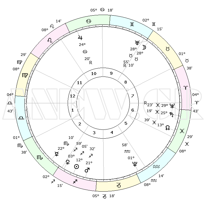 | | ΘΕΣΕΙΣ ΠΛΑΝΗΤΩΝ ΑΣΤΡΟΛΟΓΙΚΟΥ ΧΑΡΤΗ ΤΗΣ ΣΤΙΓΜΗΣ ΑΥΤΗΣ | | | | Πλανήτης | Ζώδιο | Μοίρες | Δεκαήμ. | Σε οίκο | Απόκλιση | | Ακμές των οίκων | | Ηλιος | Τοξότης | 12°03' | Δεύτερο | 3 | 22 S 14 | | 1ος | 26°07' | Παρθένος | | Σελήνη | Ταύρος | 27°43' | Τρίτο | 9 | 24 N 19 | | 2ος | 22°24' | Ζυγός | | Ερμής | Σκορπιός | 22°09' | Τρίτο | 2 | 15 S 48 | | 3ος | 22°41' | Σκορπιός | | Αφροδίτη | Τοξότης | 03°57' | Πρώτο | 3 | 20 S 21 | | 4ος | 25°38' | Τοξότης | | Αρης | Τοξότης | 21°31' | Τρίτο | 3 | 23 S 51 | | 5ος | 28°40' | Αιγόκερως | | Δίας | Καρκίνος | 24°20'R | Τρίτο | 10 | 21 N 25 | | 6ος | 29°15' | Υδροχόος | | Κρόνος | Ιχθείς | 25°19' | Τρίτο | 6 | 04 S 02 | | 7ος | 26°07' | Ιχθείς | | Ουρανός | Ταύρος | 28°55'R | Τρίτο | 9 | 19 N 43 | | 8ος | 22°24' | Κριός | | Ποσειδώνας | Ιχθείς | 29°23'R | Τρίτο | 7 | 01 S 29 | | 9ος | 22°41' | Ταύρος | | Πλούτωνας | Υδροχόος | 01°58' | Πρώτο | 5 | 23 S 23 | | 10ος | 25°38' | Δίδυμοι | | Β. Δεσμός | Ιχθείς | 13°39' | Δεύτερο | 6 | 06 S 26 | | 11ος | 28°40' | Καρκίνος | | Ωροσκόπος | Παρθένος | 26°07' | Τρίτο | | | 12ος | 29°15' | Λέων | | Μεσουράνημα | Δίδυμοι | 25°38' | Τρίτο | | | |