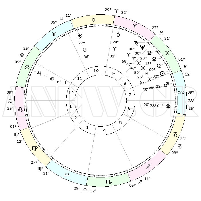 | | ΘΕΣΕΙΣ ΠΛΑΝΗΤΩΝ ΑΣΤΡΟΛΟΓΙΚΟΥ ΧΑΡΤΗ ΤΗΣ ΣΤΙΓΜΗΣ ΑΥΤΗΣ | | | | Πλανήτης | Ζώδιο | Μοίρες | Δεκαήμ. | Σε οίκο | Απόκλιση | | Ακμές των οίκων | | Ηλιος | Ιχθείς | 02°52' | Πρώτο | 9 | 10 S 27 | | 1ος | 15°02' | Καρκίνος | | Σελήνη | Κριός | 23°23' | Τρίτο | 10 | 12 N 31 | | 2ος | 05°28' | Λέων | | Ερμής | Ιχθείς | 20°44' | Τρίτο | 9 | 02 S 10 | | 3ος | 28°37' | Λέων | | Αφροδίτη | Ιχθείς | 13°52' | Δεύτερο | 9 | 07 S 40 | | 4ος | 27°26' | Παρθένος | | Αρης | Υδροχόος | 22°51' | Τρίτο | 8 | 14 S 56 | | 5ος | 03°09' | Σκορπιός | | Δίας | Καρκίνος | 15°35'R | Δεύτερο | 1 | 22 N 51 | | 6ος | 11°21' | Τοξότης | | Κρόνος | Κριός | 00°58' | Πρώτο | 10 | 01 S 35 | | 7ος | 15°02' | Αιγόκερως | | Ουρανός | Ταύρος | 27°36' | Τρίτο | 11 | 19 N 26 | | 8ος | 05°28' | Υδροχόος | | Ποσειδώνας | Κριός | 00°47' | Πρώτο | 10 | 00 S 53 | | 9ος | 28°37' | Υδροχόος | | Πλούτωνας | Υδροχόος | 04°20' | Πρώτο | 7 | 22 S 55 | | 10ος | 27°26' | Ιχθείς | | Β. Δεσμός | Ιχθείς | 09°27' | Πρώτο | 9 | 08 S 02 | | 11ος | 03°09' | Ταύρος | | Ωροσκόπος | Καρκίνος | 15°02' | Δεύτερο | | | 12ος | 11°21' | Δίδυμοι | | Μεσουράνημα | Ιχθείς | 27°26' | Τρίτο | | | |