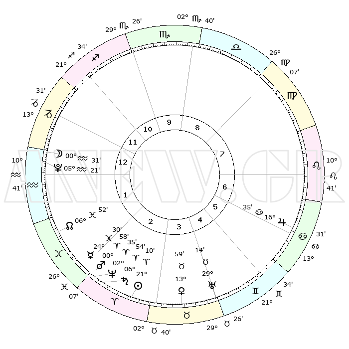 | | ΘΕΣΕΙΣ ΠΛΑΝΗΤΩΝ ΑΣΤΡΟΛΟΓΙΚΟΥ ΧΑΡΤΗ ΤΗΣ ΣΤΙΓΜΗΣ ΑΥΤΗΣ | | | | Πλανήτης | Ζώδιο | Μοίρες | Δεκαήμ. | Σε οίκο | Απόκλιση | | Ακμές των οίκων | | Ηλιος | Κριός | 21°06' | Τρίτο | 3 | 08 N 14 | | 1ος | 11°09' | Αιγόκερως | | Σελήνη | Αιγόκερως | 29°38' | Τρίτο | 1 | 23 S 22 | | 2ος | 21°09' | Υδροχόος | | Ερμής | Ιχθείς | 24°25' | Τρίτο | 2 | 04 S 25 | | 3ος | 01°25' | Κριός | | Αφροδίτη | Ταύρος | 13°54' | Δεύτερο | 4 | 16 N 00 | | 4ος | 03°23' | Ταύρος | | Αρης | Κριός | 00°54' | Πρώτο | 2 | 00 S 34 | | 5ος | 28°04' | Ταύρος | | Δίας | Καρκίνος | 16°34' | Δεύτερο | 7 | 22 N 47 | | 6ος | 19°22' | Δίδυμοι | | Κρόνος | Κριός | 06°54' | Πρώτο | 3 | 00 N 46 | | 7ος | 11°09' | Καρκίνος | | Ουρανός | Ταύρος | 29°13' | Τρίτο | 5 | 19 N 49 | | 8ος | 21°09' | Λέων | | Ποσειδώνας | Κριός | 02°35' | Πρώτο | 3 | 00 S 11 | | 9ος | 01°25' | Ζυγός | | Πλούτωνας | Υδροχόος | 05°21' | Πρώτο | 1 | 22 S 47 | | 10ος | 03°23' | Σκορπιός | | Β. Δεσμός | Ιχθείς | 06°53' | Πρώτο | 2 | 08 S 59 | | 11ος | 28°04' | Σκορπιός | | Ωροσκόπος | Αιγόκερως | 11°09' | Δεύτερο | | | 12ος | 19°22' | Τοξότης | | Μεσουράνημα | Σκορπιός | 03°23' | Πρώτο | | | |