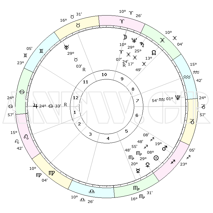 | | ΘΕΣΕΙΣ ΠΛΑΝΗΤΩΝ ΑΣΤΡΟΛΟΓΙΚΟΥ ΧΑΡΤΗ ΤΗΣ ΣΤΙΓΜΗΣ ΑΥΤΗΣ | | | | Πλανήτης | Ζώδιο | Μοίρες | Δεκαήμ. | Σε οίκο | Απόκλιση | | Ακμές των οίκων | | Ηλιος | Τοξότης | 08°46' | Πρώτο | 5 | 21 S 45 | | 1ος | 14°45' | Καρκίνος | | Σελήνη | Κριός | 09°38' | Πρώτο | 10 | 05 N 48 | | 2ος | 05°11' | Λέων | | Ερμής | Σκορπιός | 20°48' | Τρίτο | 5 | 15 S 27 | | 3ος | 28°18' | Λέων | | Αφροδίτη | Σκορπιός | 29°52' | Τρίτο | 5 | 19 S 25 | | 4ος | 27°04' | Παρθένος | | Αρης | Τοξότης | 19°06' | Δεύτερο | 6 | 23 S 39 | | 5ος | 02°46' | Σκορπιός | | Δίας | Καρκίνος | 24°33'R | Τρίτο | 1 | 21 N 22 | | 6ος | 11°00' | Τοξότης | | Κρόνος | Ιχθείς | 25°17' | Τρίτο | 9 | 04 S 03 | | 7ος | 14°45' | Αιγόκερως | | Ουρανός | Ταύρος | 29°03'R | Τρίτο | 11 | 19 N 45 | | 8ος | 05°11' | Υδροχόος | | Ποσειδώνας | Ιχθείς | 29°24'R | Τρίτο | 10 | 01 S 29 | | 9ος | 28°18' | Υδροχόος | | Πλούτωνας | Υδροχόος | 01°54' | Πρώτο | 7 | 23 S 24 | | 10ος | 27°04' | Ιχθείς | | Β. Δεσμός | Ιχθείς | 13°49' | Δεύτερο | 9 | 06 S 22 | | 11ος | 02°46' | Ταύρος | | Ωροσκόπος | Καρκίνος | 14°45' | Δεύτερο | | | 12ος | 11°00' | Δίδυμοι | | Μεσουράνημα | Ιχθείς | 27°04' | Τρίτο | | | |