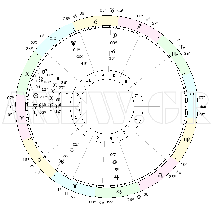 | | ΘΕΣΕΙΣ ΠΛΑΝΗΤΩΝ ΑΣΤΡΟΛΟΓΙΚΟΥ ΧΑΡΤΗ ΤΗΣ ΣΤΙΓΜΗΣ ΑΥΤΗΣ | | | | Πλανήτης | Ζώδιο | Μοίρες | Δεκαήμ. | Σε οίκο | Απόκλιση | | Ακμές των οίκων | | Ηλιος | Ιχθείς | 21°35' | Τρίτο | 1 | 03 S 20 | | 1ος | 26°36' | Υδροχόος | | Σελήνη | Τοξότης | 29°47' | Τρίτο | 10 | 28 S 22 | | 2ος | 12°14' | Κριός | | Ερμής | Ιχθείς | 12°20'R | Δεύτερο | 1 | 04 S 08 | | 3ος | 15°38' | Ταύρος | | Αφροδίτη | Κριός | 07°06' | Πρώτο | 1 | 01 N 47 | | 4ος | 10°23' | Δίδυμοι | | Αρης | Ιχθείς | 07°32' | Πρώτο | 1 | 09 S 45 | | 5ος | 02°05' | Καρκίνος | | Δίας | Καρκίνος | 15°05' | Δεύτερο | 5 | 22 N 56 | | 6ος | 25°19' | Καρκίνος | | Κρόνος | Κριός | 03°12' | Πρώτο | 1 | 00 S 41 | | 7ος | 26°36' | Λέων | | Ουρανός | Ταύρος | 28°01' | Τρίτο | 3 | 19 N 33 | | 8ος | 12°14' | Ζυγός | | Ποσειδώνας | Κριός | 01°28' | Πρώτο | 1 | 00 S 37 | | 9ος | 15°38' | Σκορπιός | | Πλούτωνας | Υδροχόος | 04°49' | Πρώτο | 12 | 22 S 50 | | 10ος | 10°23' | Τοξότης | | Β. Δεσμός | Ιχθείς | 08°27' | Πρώτο | 1 | 08 S 24 | | 11ος | 02°05' | Αιγόκερως | | Ωροσκόπος | Υδροχόος | 26°36' | Τρίτο | | | 12ος | 25°19' | Αιγόκερως | | Μεσουράνημα | Τοξότης | 10°23' | Δεύτερο | | | |