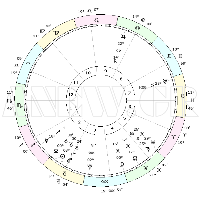 | | ΘΕΣΕΙΣ ΠΛΑΝΗΤΩΝ ΑΣΤΡΟΛΟΓΙΚΟΥ ΧΑΡΤΗ ΤΗΣ ΣΤΙΓΜΗΣ ΑΥΤΗΣ | | | | Πλανήτης | Ζώδιο | Μοίρες | Δεκαήμ. | Σε οίκο | Απόκλιση | | Ακμές των οίκων | | Ηλιος | Αιγόκερως | 03°26' | Πρώτο | 3 | 23 S 23 | | 1ος | 20°33' | Ζυγός | | Σελήνη | Υδροχόος | 29°19' | Τρίτο | 5 | 12 S 42 | | 2ος | 18°25' | Σκορπιός | | Ερμής | Τοξότης | 18°08' | Δεύτερο | 2 | 22 S 39 | | 3ος | 19°45' | Τοξότης | | Αφροδίτη | Αιγόκερως | 00°24' | Πρώτο | 3 | 23 S 40 | | 4ος | 23°22' | Αιγόκερως | | Αρης | Αιγόκερως | 07°21' | Πρώτο | 3 | 24 S 04 | | 5ος | 26°19' | Υδροχόος | | Δίας | Καρκίνος | 22°14'R | Τρίτο | 9 | 21 N 49 | | 6ος | 25°44' | Ιχθείς | | Κρόνος | Ιχθείς | 25°55' | Τρίτο | 6 | 03 S 43 | | 7ος | 20°33' | Κριός | | Ουρανός | Ταύρος | 28°09'R | Τρίτο | 8 | 19 N 33 | | 8ος | 18°25' | Ταύρος | | Ποσειδώνας | Ιχθείς | 29°26' | Τρίτο | 6 | 01 S 27 | | 9ος | 19°45' | Δίδυμοι | | Πλούτωνας | Υδροχόος | 02°31' | Πρώτο | 4 | 23 S 16 | | 10ος | 23°22' | Καρκίνος | | Β. Δεσμός | Ιχθείς | 12°32' | Δεύτερο | 5 | 06 S 51 | | 11ος | 26°19' | Λέων | | Ωροσκόπος | Ζυγός | 20°33' | Τρίτο | | | 12ος | 25°44' | Παρθένος | | Μεσουράνημα | Καρκίνος | 23°22' | Τρίτο | | | |