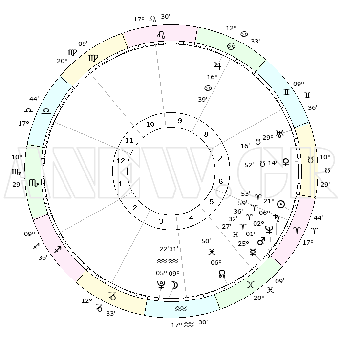 | | ΘΕΣΕΙΣ ΠΛΑΝΗΤΩΝ ΑΣΤΡΟΛΟΓΙΚΟΥ ΧΑΡΤΗ ΤΗΣ ΣΤΙΓΜΗΣ ΑΥΤΗΣ | | | | Πλανήτης | Ζώδιο | Μοίρες | Δεκαήμ. | Σε οίκο | Απόκλιση | | Ακμές των οίκων | | Ηλιος | Κριός | 21°49' | Τρίτο | 6 | 08 N 30 | | 1ος | 22°43' | Ζυγός | | Σελήνη | Υδροχόος | 08°45' | Πρώτο | 4 | 20 S 31 | | 2ος | 20°42' | Σκορπιός | | Ερμής | Ιχθείς | 25°22' | Τρίτο | 5 | 04 S 05 | | 3ος | 22°09' | Τοξότης | | Αφροδίτη | Ταύρος | 14°48' | Δεύτερο | 7 | 16 N 18 | | 4ος | 25°54' | Αιγόκερως | | Αρης | Κριός | 01°29' | Πρώτο | 6 | 00 S 20 | | 5ος | 28°51' | Υδροχόος | | Δίας | Καρκίνος | 16°38' | Δεύτερο | 9 | 22 N 46 | | 6ος | 28°07' | Ιχθείς | | Κρόνος | Κριός | 06°59' | Πρώτο | 6 | 00 N 48 | | 7ος | 22°43' | Κριός | | Ουρανός | Ταύρος | 29°16' | Τρίτο | 8 | 19 N 49 | | 8ος | 20°42' | Ταύρος | | Ποσειδώνας | Κριός | 02°36' | Πρώτο | 6 | 00 S 10 | | 9ος | 22°09' | Δίδυμοι | | Πλούτωνας | Υδροχόος | 05°22' | Πρώτο | 4 | 22 S 47 | | 10ος | 25°54' | Καρκίνος | | Β. Δεσμός | Ιχθείς | 06°50' | Πρώτο | 5 | 09 S 00 | | 11ος | 28°51' | Λέων | | Ωροσκόπος | Ζυγός | 22°43' | Τρίτο | | | 12ος | 28°07' | Παρθένος | | Μεσουράνημα | Καρκίνος | 25°54' | Τρίτο | | | |