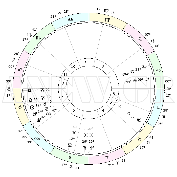 | | ΘΕΣΕΙΣ ΠΛΑΝΗΤΩΝ ΑΣΤΡΟΛΟΓΙΚΟΥ ΧΑΡΤΗ ΤΗΣ ΣΤΙΓΜΗΣ ΑΥΤΗΣ | | | | Πλανήτης | Ζώδιο | Μοίρες | Δεκαήμ. | Σε οίκο | Απόκλιση | | Ακμές των οίκων | | Ηλιος | Αιγόκερως | 12°39' | Δεύτερο | 2 | 22 S 50 | | 1ος | 13°03' | Σκορπιός | | Σελήνη | Καρκίνος | 07°29' | Πρώτο | 8 | 27 N 45 | | 2ος | 12°22' | Τοξότης | | Ερμής | Αιγόκερως | 01°48' | Πρώτο | 2 | 24 S 13 | | 3ος | 15°37' | Αιγόκερως | | Αφροδίτη | Αιγόκερως | 11°48' | Δεύτερο | 2 | 23 S 29 | | 4ος | 20°45' | Υδροχόος | | Αρης | Αιγόκερως | 14°16' | Δεύτερο | 2 | 23 S 34 | | 5ος | 23°16' | Ιχθείς | | Δίας | Καρκίνος | 21°05'R | Τρίτο | 9 | 22 N 01 | | 6ος | 20°33' | Κριός | | Κρόνος | Ιχθείς | 26°25' | Τρίτο | 5 | 03 S 30 | | 7ος | 13°03' | Ταύρος | | Ουρανός | Ταύρος | 27°53'R | Τρίτο | 7 | 19 N 30 | | 8ος | 12°22' | Δίδυμοι | | Ποσειδώνας | Ιχθείς | 29°32' | Τρίτο | 5 | 01 S 24 | | 9ος | 15°37' | Καρκίνος | | Πλούτωνας | Υδροχόος | 02°47' | Πρώτο | 3 | 23 S 12 | | 10ος | 20°45' | Λέων | | Β. Δεσμός | Ιχθείς | 12°04' | Δεύτερο | 4 | 07 S 02 | | 11ος | 23°16' | Παρθένος | | Ωροσκόπος | Σκορπιός | 13°03' | Δεύτερο | | | 12ος | 20°33' | Ζυγός | | Μεσουράνημα | Λέων | 20°45' | Τρίτο | | | |