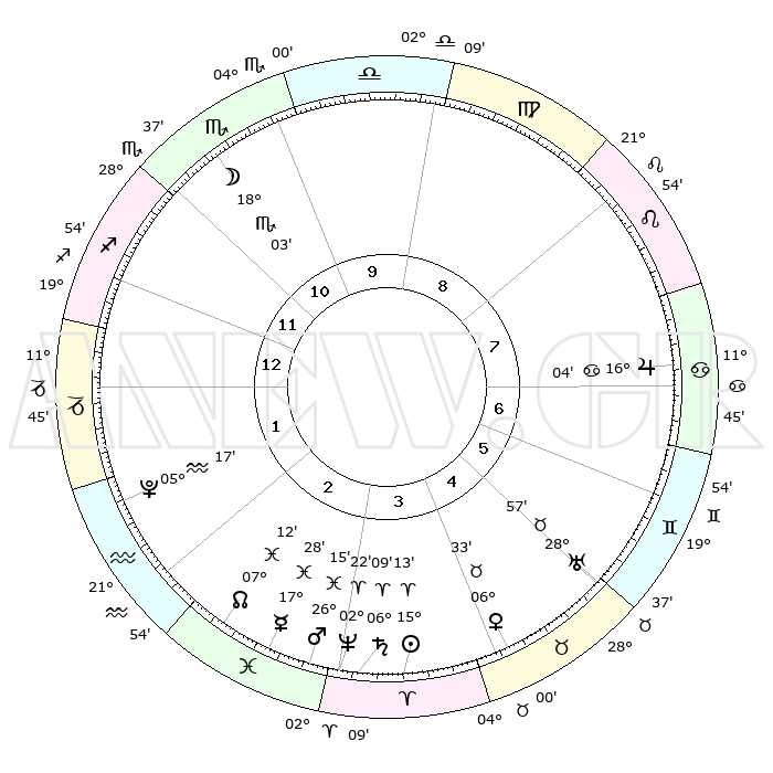 | | ΘΕΣΕΙΣ ΠΛΑΝΗΤΩΝ ΑΣΤΡΟΛΟΓΙΚΟΥ ΧΑΡΤΗ ΤΗΣ ΣΤΙΓΜΗΣ ΑΥΤΗΣ | | | | Πλανήτης | Ζώδιο | Μοίρες | Δεκαήμ. | Σε οίκο | Απόκλιση | | Ακμές των οίκων | | Ηλιος | Κριός | 15°02' | Δεύτερο | 5 | 05 N 55 | | 1ος | 16°49' | Σκορπιός | | Σελήνη | Σκορπιός | 15°54' | Δεύτερο | 12 | 21 S 10 | | 2ος | 16°27' | Τοξότης | | Ερμής | Ιχθείς | 17°17' | Δεύτερο | 4 | 06 S 42 | | 3ος | 20°10' | Αιγόκερως | | Αφροδίτη | Ταύρος | 06°20' | Πρώτο | 6 | 13 N 22 | | 4ος | 25°34' | Υδροχόος | | Αρης | Ιχθείς | 26°06' | Τρίτο | 4 | 02 S 30 | | 5ος | 27°53' | Ιχθείς | | Δίας | Καρκίνος | 16°03' | Δεύτερο | 8 | 22 N 50 | | 6ος | 24°41' | Κριός | | Κρόνος | Κριός | 06°08' | Πρώτο | 5 | 00 N 29 | | 7ος | 16°49' | Ταύρος | | Ουρανός | Ταύρος | 28°56' | Τρίτο | 7 | 19 N 45 | | 8ος | 16°27' | Δίδυμοι | | Ποσειδώνας | Κριός | 02°21' | Πρώτο | 5 | 00 S 16 | | 9ος | 20°10' | Καρκίνος | | Πλούτωνας | Υδροχόος | 05°17' | Πρώτο | 3 | 22 S 47 | | 10ος | 25°34' | Λέων | | Β. Δεσμός | Ιχθείς | 07°12' | Πρώτο | 4 | 08 S 52 | | 11ος | 27°53' | Παρθένος | | Ωροσκόπος | Σκορπιός | 16°49' | Δεύτερο | | | 12ος | 24°41' | Ζυγός | | Μεσουράνημα | Λέων | 25°34' | Τρίτο | | | |