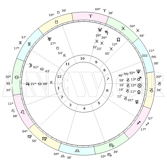 | | ΘΕΣΕΙΣ ΠΛΑΝΗΤΩΝ ΑΣΤΡΟΛΟΓΙΚΟΥ ΧΑΡΤΗ ΤΗΣ ΣΤΙΓΜΗΣ ΑΥΤΗΣ | | | | Πλανήτης | Ζώδιο | Μοίρες | Δεκαήμ. | Σε οίκο | Απόκλιση | | Ακμές των οίκων | | Ηλιος | Αιγόκερως | 12°11' | Δεύτερο | 7 | 22 S 52 | | 1ος | 25°58' | Δίδυμοι | | Σελήνη | Καρκίνος | 00°33' | Πρώτο | 1 | 28 N 12 | | 2ος | 17°03' | Καρκίνος | | Ερμής | Αιγόκερως | 01°05' | Πρώτο | 7 | 24 S 10 | | 3ος | 08°37' | Λέων | | Αφροδίτη | Αιγόκερως | 11°13' | Δεύτερο | 7 | 23 S 31 | | 4ος | 04°18' | Παρθένος | | Αρης | Αιγόκερως | 13°55' | Δεύτερο | 7 | 23 S 36 | | 5ος | 07°34' | Ζυγός | | Δίας | Καρκίνος | 21°09'R | Τρίτο | 2 | 22 N 01 | | 6ος | 17°48' | Σκορπιός | | Κρόνος | Ιχθείς | 26°23' | Τρίτο | 10 | 03 S 30 | | 7ος | 25°58' | Τοξότης | | Ουρανός | Ταύρος | 27°54'R | Τρίτο | 12 | 19 N 30 | | 8ος | 17°03' | Αιγόκερως | | Ποσειδώνας | Ιχθείς | 29°32' | Τρίτο | 10 | 01 S 25 | | 9ος | 08°37' | Υδροχόος | | Πλούτωνας | Υδροχόος | 02°46' | Πρώτο | 8 | 23 S 13 | | 10ος | 04°18' | Ιχθείς | | Β. Δεσμός | Ιχθείς | 12°05' | Δεύτερο | 10 | 07 S 02 | | 11ος | 07°34' | Κριός | | Ωροσκόπος | Δίδυμοι | 25°58' | Τρίτο | | | 12ος | 17°48' | Ταύρος | | Μεσουράνημα | Ιχθείς | 04°18' | Πρώτο | | | |