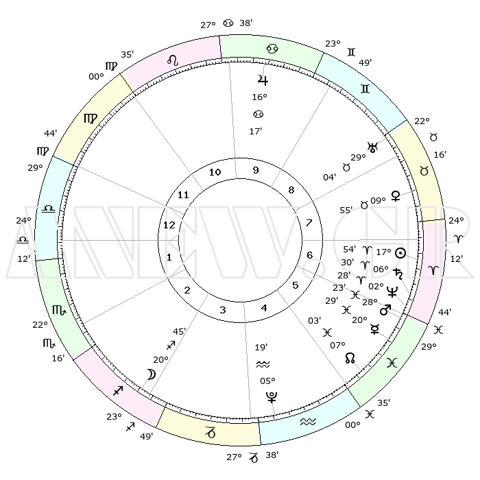 | | ΘΕΣΕΙΣ ΠΛΑΝΗΤΩΝ ΑΣΤΡΟΛΟΓΙΚΟΥ ΧΑΡΤΗ ΤΗΣ ΣΤΙΓΜΗΣ ΑΥΤΗΣ | | | | Πλανήτης | Ζώδιο | Μοίρες | Δεκαήμ. | Σε οίκο | Απόκλιση | | Ακμές των οίκων | | Ηλιος | Κριός | 17°50' | Δεύτερο | 7 | 07 N 00 | | 1ος | 01°32' | Ζυγός | | Σελήνη | Τοξότης | 19°50' | Δεύτερο | 3 | 28 S 05 | | 2ος | 28°14' | Ζυγός | | Ερμής | Ιχθείς | 20°23' | Τρίτο | 6 | 05 S 46 | | 3ος | 28°44' | Σκορπιός | | Αφροδίτη | Ταύρος | 09°49' | Πρώτο | 8 | 14 N 36 | | 4ος | 01°44' | Αιγόκερως | | Αρης | Ιχθείς | 28°19' | Τρίτο | 6 | 01 S 36 | | 5ος | 04°41' | Υδροχόος | | Δίας | Καρκίνος | 16°17' | Δεύτερο | 10 | 22 N 49 | | 6ος | 05°04' | Ιχθείς | | Κρόνος | Κριός | 06°29' | Πρώτο | 7 | 00 N 37 | | 7ος | 01°32' | Κριός | | Ουρανός | Ταύρος | 29°04' | Τρίτο | 9 | 19 N 47 | | 8ος | 28°14' | Κριός | | Ποσειδώνας | Κριός | 02°27' | Πρώτο | 7 | 00 S 14 | | 9ος | 28°44' | Ταύρος | | Πλούτωνας | Υδροχόος | 05°19' | Πρώτο | 5 | 22 S 47 | | 10ος | 01°43' | Καρκίνος | | Β. Δεσμός | Ιχθείς | 07°03' | Πρώτο | 6 | 08 S 55 | | 11ος | 04°41' | Λέων | | Ωροσκόπος | Ζυγός | 01°32' | Πρώτο | | | 12ος | 05°04' | Παρθένος | | Μεσουράνημα | Καρκίνος | 01°43' | Πρώτο | | | |