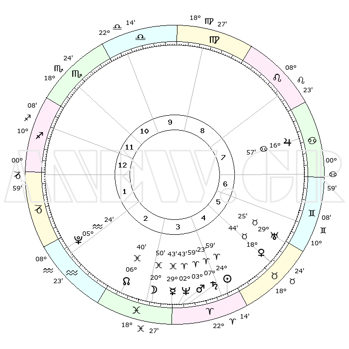 | | ΘΕΣΕΙΣ ΠΛΑΝΗΤΩΝ ΑΣΤΡΟΛΟΓΙΚΟΥ ΧΑΡΤΗ ΤΗΣ ΣΤΙΓΜΗΣ ΑΥΤΗΣ | | | | Πλανήτης | Ζώδιο | Μοίρες | Δεκαήμ. | Σε οίκο | Απόκλιση | | Ακμές των οίκων | | Ηλιος | Κριός | 24°54' | Τρίτο | 5 | 09 N 38 | | 1ος | 07°46' | Τοξότης | | Σελήνη | Ιχθείς | 19°49' | Δεύτερο | 3 | 03 S 04 | | 2ος | 10°06' | Αιγόκερως | | Ερμής | Ιχθείς | 29°36' | Τρίτο | 4 | 02 S 32 | | 3ος | 17°07' | Υδροχόος | | Αφροδίτη | Ταύρος | 18°39' | Δεύτερο | 6 | 17 N 32 | | 4ος | 23°11' | Ιχθείς | | Αρης | Κριός | 03°56' | Πρώτο | 4 | 00 N 39 | | 5ος | 23°08' | Κριός | | Δίας | Καρκίνος | 16°57' | Δεύτερο | 8 | 22 N 44 | | 6ος | 17°09' | Ταύρος | | Κρόνος | Κριός | 07°22' | Πρώτο | 4 | 00 N 57 | | 7ος | 07°46' | Δίδυμοι | | Ουρανός | Ταύρος | 29°25' | Τρίτο | 6 | 19 N 51 | | 8ος | 10°06' | Καρκίνος | | Ποσειδώνας | Κριός | 02°43' | Πρώτο | 4 | 00 S 07 | | 9ος | 17°07' | Λέων | | Πλούτωνας | Υδροχόος | 05°24' | Πρώτο | 2 | 22 S 47 | | 10ος | 23°11' | Παρθένος | | Β. Δεσμός | Ιχθείς | 06°40' | Πρώτο | 3 | 09 S 04 | | 11ος | 23°08' | Ζυγός | | Ωροσκόπος | Τοξότης | 07°46' | Πρώτο | | | 12ος | 17°09' | Σκορπιός | | Μεσουράνημα | Παρθένος | 23°11' | Τρίτο | | | |