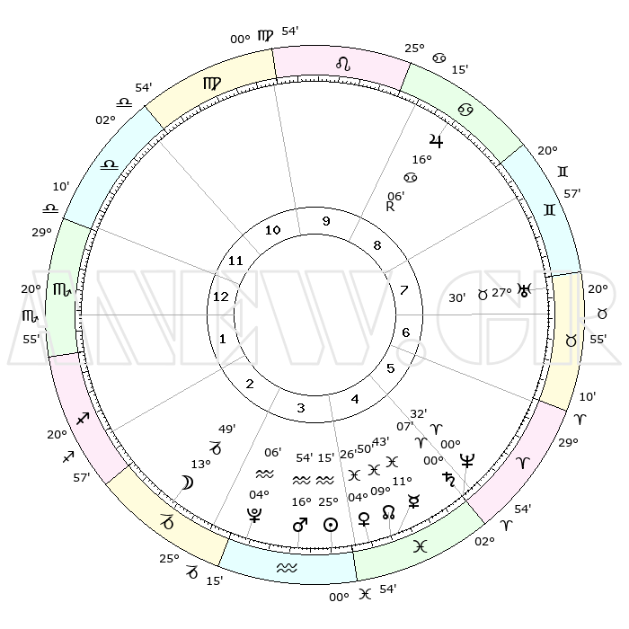 | | ΘΕΣΕΙΣ ΠΛΑΝΗΤΩΝ ΑΣΤΡΟΛΟΓΙΚΟΥ ΧΑΡΤΗ ΤΗΣ ΣΤΙΓΜΗΣ ΑΥΤΗΣ | | | | Πλανήτης | Ζώδιο | Μοίρες | Δεκαήμ. | Σε οίκο | Απόκλιση | | Ακμές των οίκων | | Ηλιος | Υδροχόος | 24°17' | Τρίτο | 3 | 13 S 26 | | 1ος | 29°49' | Σκορπιός | | Σελήνη | Αιγόκερως | 02°03' | Πρώτο | 2 | 28 S 16 | | 2ος | 00°56' | Αιγόκερως | | Ερμής | Ιχθείς | 10°13' | Δεύτερο | 3 | 08 S 05 | | 3ος | 06°36' | Υδροχόος | | Αφροδίτη | Ιχθείς | 03°13' | Πρώτο | 3 | 11 S 41 | | 4ος | 12°39' | Ιχθείς | | Αρης | Υδροχόος | 16°09' | Δεύτερο | 3 | 17 S 01 | | 5ος | 13°42' | Κριός | | Δίας | Καρκίνος | 16°11'R | Δεύτερο | 8 | 22 N 46 | | 6ος | 08°46' | Ταύρος | | Κρόνος | Κριός | 00°00'R | Πρώτο | 4 | 01 S 58 | | 7ος | 29°49' | Ταύρος | | Ουρανός | Ταύρος | 27°30' | Τρίτο | 6 | 19 N 25 | | 8ος | 00°55' | Καρκίνος | | Ποσειδώνας | Κριός | 00°30' | Πρώτο | 4 | 01 S 00 | | 9ος | 06°36' | Λέων | | Πλούτωνας | Υδροχόος | 04°04' | Πρώτο | 2 | 22 S 57 | | 10ος | 12°39' | Παρθένος | | Β. Δεσμός | Ιχθείς | 09°54' | Πρώτο | 3 | 07 S 51 | | 11ος | 13°42' | Ζυγός | | Ωροσκόπος | Σκορπιός | 29°49' | Τρίτο | | | 12ος | 08°46' | Σκορπιός | | Μεσουράνημα | Παρθένος | 12°39' | Δεύτερο | | | |