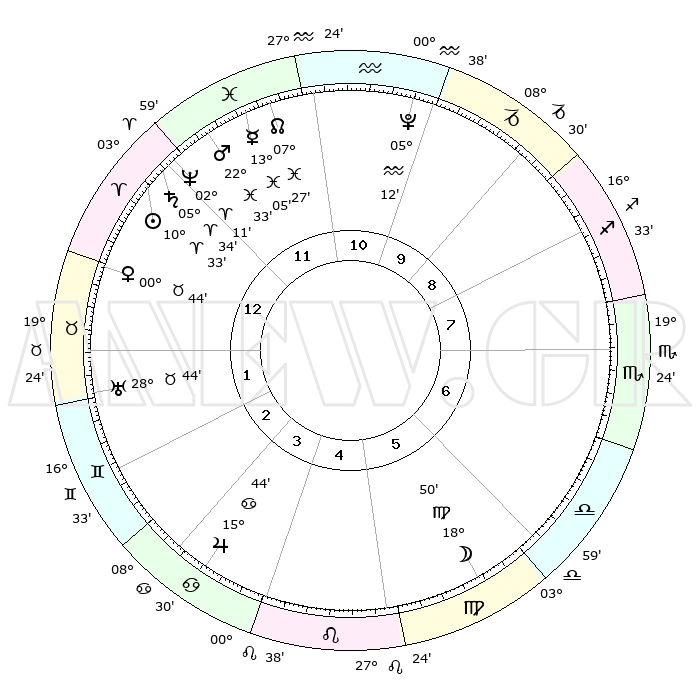 | | ΘΕΣΕΙΣ ΠΛΑΝΗΤΩΝ ΑΣΤΡΟΛΟΓΙΚΟΥ ΧΑΡΤΗ ΤΗΣ ΣΤΙΓΜΗΣ ΑΥΤΗΣ | | | | Πλανήτης | Ζώδιο | Μοίρες | Δεκαήμ. | Σε οίκο | Απόκλιση | | Ακμές των οίκων | | Ηλιος | Κριός | 10°29' | Δεύτερο | 12 | 04 N 09 | | 1ος | 14°39' | Κριός | | Σελήνη | Παρθένος | 17°58' | Δεύτερο | 6 | 03 N 59 | | 2ος | 21°08' | Ταύρος | | Ερμής | Ιχθείς | 13°02' | Δεύτερο | 12 | 07 S 45 | | 3ος | 16°28' | Δίδυμοι | | Αφροδίτη | Ταύρος | 00°39' | Πρώτο | 1 | 11 N 15 | | 4ος | 08°18' | Καρκίνος | | Αρης | Ιχθείς | 22°29' | Τρίτο | 12 | 03 S 56 | | 5ος | 01°25' | Λέων | | Δίας | Καρκίνος | 15°44' | Δεύτερο | 4 | 22 N 52 | | 6ος | 01°15' | Παρθένος | | Κρόνος | Κριός | 05°34' | Πρώτο | 12 | 00 N 15 | | 7ος | 14°39' | Ζυγός | | Ουρανός | Ταύρος | 28°44' | Τρίτο | 2 | 19 N 42 | | 8ος | 21°08' | Σκορπιός | | Ποσειδώνας | Κριός | 02°11' | Πρώτο | 12 | 00 S 20 | | 9ος | 16°28' | Τοξότης | | Πλούτωνας | Υδροχόος | 05°12' | Πρώτο | 11 | 22 S 47 | | 10ος | 08°18' | Αιγόκερως | | Β. Δεσμός | Ιχθείς | 07°27' | Πρώτο | 12 | 08 S 46 | | 11ος | 01°25' | Υδροχόος | | Ωροσκόπος | Κριός | 14°39' | Δεύτερο | | | 12ος | 01°15' | Ιχθείς | | Μεσουράνημα | Αιγόκερως | 08°18' | Πρώτο | | | |