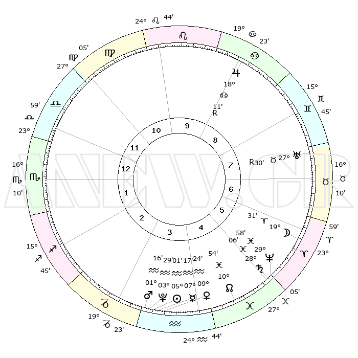 | | ΘΕΣΕΙΣ ΠΛΑΝΗΤΩΝ ΑΣΤΡΟΛΟΓΙΚΟΥ ΧΑΡΤΗ ΤΗΣ ΣΤΙΓΜΗΣ ΑΥΤΗΣ | | | | Πλανήτης | Ζώδιο | Μοίρες | Δεκαήμ. | Σε οίκο | Απόκλιση | | Ακμές των οίκων | | Ηλιος | Υδροχόος | 04°57' | Πρώτο | 4 | 19 S 01 | | 1ος | 28°14' | Ζυγός | | Σελήνη | Κριός | 18°41' | Δεύτερο | 6 | 10 N 22 | | 2ος | 26°33' | Σκορπιός | | Ερμής | Υδροχόος | 07°11' | Πρώτο | 4 | 20 S 29 | | 3ος | 28°22' | Τοξότης | | Αφροδίτη | Υδροχόος | 09°19' | Πρώτο | 4 | 19 S 06 | | 4ος | 02°27' | Υδροχόος | | Αρης | Υδροχόος | 01°13' | Πρώτο | 3 | 20 S 52 | | 5ος | 05°23' | Ιχθείς | | Δίας | Καρκίνος | 18°11'R | Δεύτερο | 9 | 22 N 29 | | 6ος | 04°12' | Κριός | | Κρόνος | Ιχθείς | 28°05' | Τρίτο | 5 | 02 S 46 | | 7ος | 28°14' | Κριός | | Ουρανός | Ταύρος | 27°30'R | Τρίτο | 8 | 19 N 25 | | 8ος | 26°33' | Ταύρος | | Ποσειδώνας | Ιχθείς | 29°57' | Τρίτο | 5 | 01 S 14 | | 9ος | 28°22' | Δίδυμοι | | Πλούτωνας | Υδροχόος | 03°29' | Πρώτο | 4 | 23 S 04 | | 10ος | 02°27' | Λέων | | Β. Δεσμός | Ιχθείς | 10°54' | Δεύτερο | 5 | 07 S 29 | | 11ος | 05°23' | Παρθένος | | Ωροσκόπος | Ζυγός | 28°14' | Τρίτο | | | 12ος | 04°12' | Ζυγός | | Μεσουράνημα | Λέων | 02°27' | Πρώτο | | | |