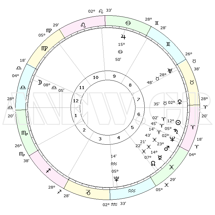 | | ΘΕΣΕΙΣ ΠΛΑΝΗΤΩΝ ΑΣΤΡΟΛΟΓΙΚΟΥ ΧΑΡΤΗ ΤΗΣ ΣΤΙΓΜΗΣ ΑΥΤΗΣ | | | | Πλανήτης | Ζώδιο | Μοίρες | Δεκαήμ. | Σε οίκο | Απόκλιση | | Ακμές των οίκων | | Ηλιος | Κριός | 11°58' | Δεύτερο | 7 | 04 N 44 | | 1ος | 09°24' | Ζυγός | | Σελήνη | Ζυγός | 07°15' | Πρώτο | 12 | 05 S 10 | | 2ος | 06°37' | Σκορπιός | | Ερμής | Ιχθείς | 14°18' | Δεύτερο | 6 | 07 S 29 | | 3ος | 07°25' | Τοξότης | | Αφροδίτη | Ταύρος | 02°30' | Πρώτο | 7 | 11 N 57 | | 4ος | 10°35' | Αιγόκερως | | Αρης | Ιχθείς | 23°40' | Τρίτο | 6 | 03 S 28 | | 5ος | 13°31' | Υδροχόος | | Δίας | Καρκίνος | 15°50' | Δεύτερο | 10 | 22 N 52 | | 6ος | 13°33' | Ιχθείς | | Κρόνος | Κριός | 05°45' | Πρώτο | 6 | 00 N 20 | | 7ος | 09°24' | Κριός | | Ουρανός | Ταύρος | 28°48' | Τρίτο | 8 | 19 N 43 | | 8ος | 06°37' | Ταύρος | | Ποσειδώνας | Κριός | 02°14' | Πρώτο | 6 | 00 S 19 | | 9ος | 07°25' | Δίδυμοι | | Πλούτωνας | Υδροχόος | 05°14' | Πρώτο | 4 | 22 S 47 | | 10ος | 10°35' | Καρκίνος | | Β. Δεσμός | Ιχθείς | 07°22' | Πρώτο | 5 | 08 S 48 | | 11ος | 13°31' | Λέων | | Ωροσκόπος | Ζυγός | 09°24' | Πρώτο | | | 12ος | 13°33' | Παρθένος | | Μεσουράνημα | Καρκίνος | 10°35' | Δεύτερο | | | |