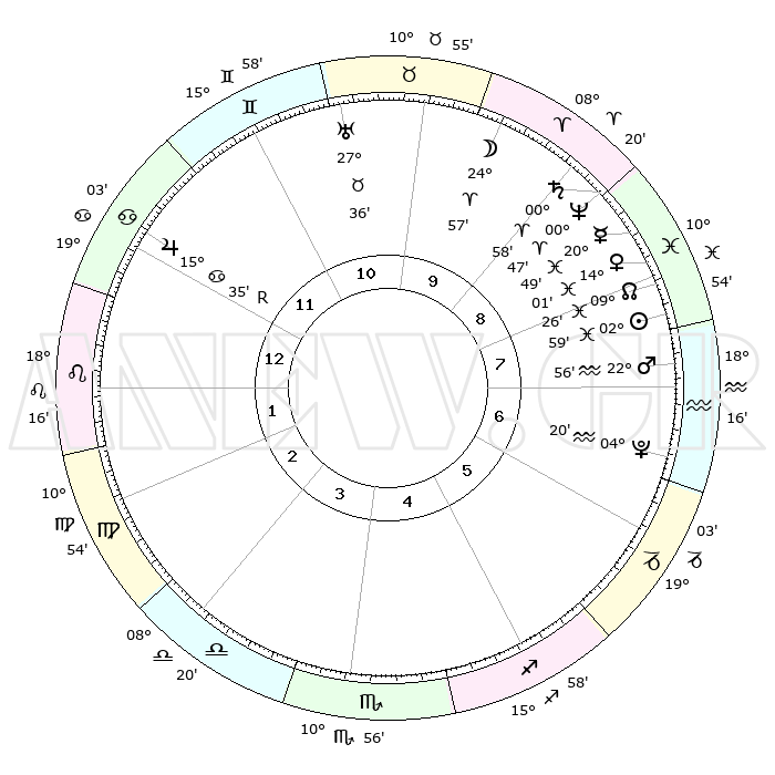 | | ΘΕΣΕΙΣ ΠΛΑΝΗΤΩΝ ΑΣΤΡΟΛΟΓΙΚΟΥ ΧΑΡΤΗ ΤΗΣ ΣΤΙΓΜΗΣ ΑΥΤΗΣ | | | | Πλανήτης | Ζώδιο | Μοίρες | Δεκαήμ. | Σε οίκο | Απόκλιση | | Ακμές των οίκων | | Ηλιος | Ιχθείς | 02°55' | Πρώτο | 8 | 10 S 26 | | 1ος | 25°51' | Καρκίνος | | Σελήνη | Κριός | 23°53' | Τρίτο | 10 | 12 N 44 | | 2ος | 16°38' | Λέων | | Ερμής | Ιχθείς | 20°45' | Τρίτο | 9 | 02 S 09 | | 3ος | 11°08' | Παρθένος | | Αφροδίτη | Ιχθείς | 13°55' | Δεύτερο | 9 | 07 S 39 | | 4ος | 11°37' | Ζυγός | | Αρης | Υδροχόος | 22°53' | Τρίτο | 8 | 14 S 55 | | 5ος | 17°42' | Σκορπιός | | Δίας | Καρκίνος | 15°35'R | Δεύτερο | 12 | 22 N 51 | | 6ος | 24°06' | Τοξότης | | Κρόνος | Κριός | 00°58' | Πρώτο | 9 | 01 S 35 | | 7ος | 25°51' | Αιγόκερως | | Ουρανός | Ταύρος | 27°36' | Τρίτο | 11 | 19 N 26 | | 8ος | 16°38' | Υδροχόος | | Ποσειδώνας | Κριός | 00°47' | Πρώτο | 9 | 00 S 53 | | 9ος | 11°08' | Ιχθείς | | Πλούτωνας | Υδροχόος | 04°20' | Πρώτο | 7 | 22 S 54 | | 10ος | 11°37' | Κριός | | Β. Δεσμός | Ιχθείς | 09°26' | Πρώτο | 8 | 08 S 02 | | 11ος | 17°42' | Ταύρος | | Ωροσκόπος | Καρκίνος | 25°51' | Τρίτο | | | 12ος | 24°06' | Δίδυμοι | | Μεσουράνημα | Κριός | 11°37' | Δεύτερο | | | |