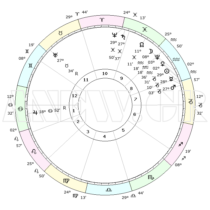 | | ΘΕΣΕΙΣ ΠΛΑΝΗΤΩΝ ΑΣΤΡΟΛΟΓΙΚΟΥ ΧΑΡΤΗ ΤΗΣ ΣΤΙΓΜΗΣ ΑΥΤΗΣ | | | | Πλανήτης | Ζώδιο | Μοίρες | Δεκαήμ. | Σε οίκο | Απόκλιση | | Ακμές των οίκων | | Ηλιος | Αιγόκερως | 29°26' | Τρίτο | 8 | 20 S 16 | | 1ος | 16°52' | Δίδυμοι | | Σελήνη | Υδροχόος | 07°20' | Πρώτο | 9 | 21 S 06 | | 2ος | 08°53' | Καρκίνος | | Ερμής | Αιγόκερως | 28°02' | Τρίτο | 8 | 22 S 30 | | 3ος | 00°08' | Λέων | | Αφροδίτη | Υδροχόος | 02°30' | Πρώτο | 9 | 20 S 40 | | 4ος | 24°34' | Λέων | | Αρης | Αιγόκερως | 26°60' | Τρίτο | 8 | 21 S 44 | | 5ος | 26°10' | Παρθένος | | Δίας | Καρκίνος | 18°53'R | Δεύτερο | 2 | 22 N 23 | | 6ος | 06°22' | Σκορπιός | | Κρόνος | Ιχθείς | 27°37' | Τρίτο | 11 | 02 S 58 | | 7ος | 16°52' | Τοξότης | | Ουρανός | Ταύρος | 27°34'R | Τρίτο | 12 | 19 N 25 | | 8ος | 08°53' | Αιγόκερως | | Ποσειδώνας | Ιχθείς | 29°50' | Τρίτο | 11 | 01 S 17 | | 9ος | 00°08' | Υδροχόος | | Πλούτωνας | Υδροχόος | 03°18' | Πρώτο | 9 | 23 S 06 | | 10ος | 24°34' | Υδροχόος | | Β. Δεσμός | Ιχθείς | 11°11' | Δεύτερο | 10 | 07 S 22 | | 11ος | 26°10' | Ιχθείς | | Ωροσκόπος | Δίδυμοι | 16°52' | Δεύτερο | | | 12ος | 06°22' | Ταύρος | | Μεσουράνημα | Υδροχόος | 24°34' | Τρίτο | | | |