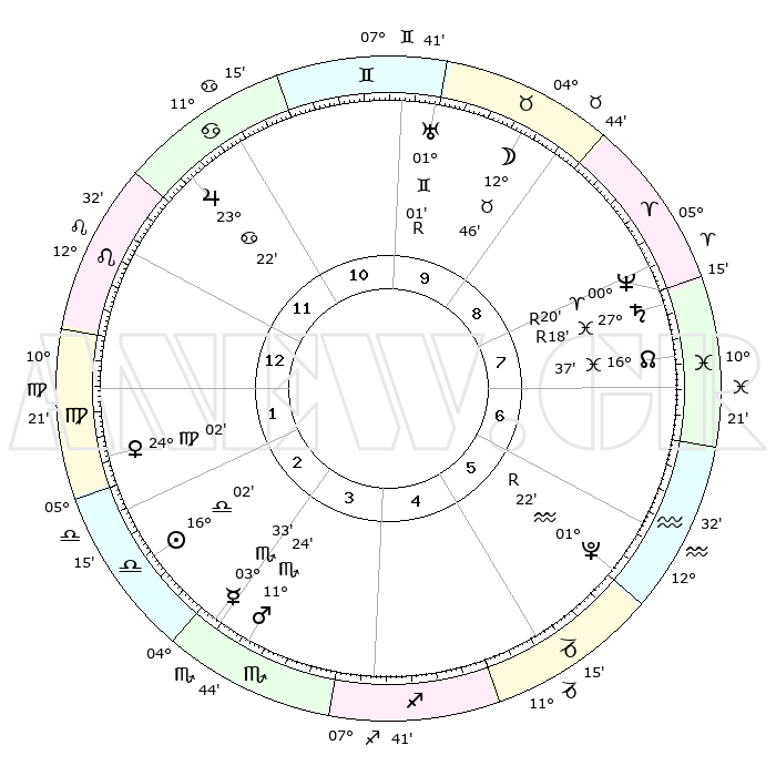 | ΘΕΣΕΙΣ ΠΛΑΝΗΤΩΝ ΑΣΤΡΟΛΟΓΙΚΟΥ ΧΑΡΤΗ ΤΗΣ ΣΤΙΓΜΗΣ ΑΥΤΗΣ | | Πλανήτης | Ζώδιο | Μοίρες | Δεκαήμ. | Σε οίκο | Απόκλιση | | Ακμές των οίκων | Ηλιος | Ζυγός | 15°56' | Δεύτερο | 3 | 06 S 16 | | 1ος | 11°29' | Λέων | Σελήνη | Ταύρος | 11°16' | Δεύτερο | 10 | 19 N 10 | | 2ος | 03°27' | Παρθένος | Ερμής | Σκορπιός | 03°24' | Πρώτο | 4 | 13 S 38 | | 3ος | 00°03' | Ζυγός | Αφροδίτη | Παρθένος | 23°55' | Τρίτο | 2 | 03 N 44 | | 4ος | 02°14' | Σκορπιός | Αρης | Σκορπιός | 11°20' | Δεύτερο | 4 | 15 S 23 | | 5ος | 07°44' | Τοξότης | Δίας | Καρκίνος | 23°22' | Τρίτο | 12 | 21 N 27 | | 6ος | 11°41' | Αιγόκερως | Κρόνος | Ιχθείς | 27°18'R | Τρίτο | 8 | 03 S 22 | | 7ος | 11°29' | Υδροχόος | Ουρανός | Δίδυμοι | 01°01'R | Πρώτο | 10 | 20 N 09 | | 8ος | 03°27' | Ιχθείς | Ποσειδώνας | Κριός | 00°20'R | Πρώτο | 9 | 01 S 08 | | 9ος | 00°03' | Κριός | Πλούτωνας | Υδροχόος | 01°22'R | Πρώτο | 6 | 23 S 32 | | 10ος | 02°14' | Ταύρος | Β. Δεσμός | Ιχθείς | 16°37' | Δεύτερο | 8 | 05 S 17 | | 11ος | 07°44' | Δίδυμοι | Ωροσκόπος | Λέων | 11°29' | Δεύτερο | | | 12ος | 11°41' | Καρκίνος | Μεσουράνημα | Ταύρος | 02°14' | Πρώτο | | | |