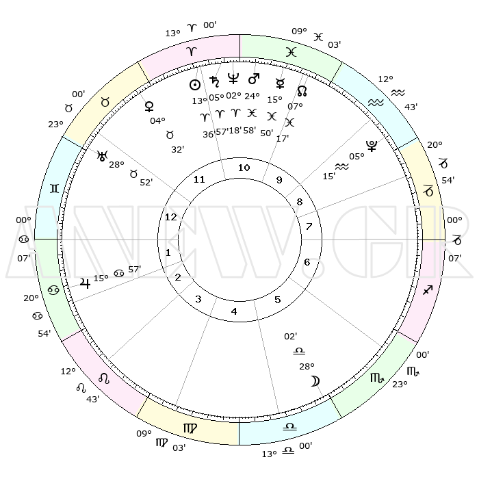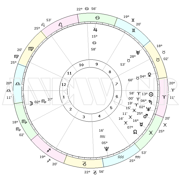| | ΘΕΣΕΙΣ ΠΛΑΝΗΤΩΝ ΑΣΤΡΟΛΟΓΙΚΟΥ ΧΑΡΤΗ ΤΗΣ ΣΤΙΓΜΗΣ ΑΥΤΗΣ | | | | Πλανήτης | Ζώδιο | Μοίρες | Δεκαήμ. | Σε οίκο | Απόκλιση | | Ακμές των οίκων | | Ηλιος | Κριός | 13°32' | Δεύτερο | 11 | 05 N 20 | | 1ος | 03°39' | Δίδυμοι | | Σελήνη | Ζυγός | 27°09' | Τρίτο | 6 | 14 S 04 | | 2ος | 27°45' | Δίδυμοι | | Ερμής | Ιχθείς | 15°46' | Δεύτερο | 11 | 07 S 07 | | 3ος | 19°04' | Καρκίνος | | Αφροδίτη | Ταύρος | 04°27' | Πρώτο | 12 | 12 N 40 | | 4ος | 12°07' | Λέων | | Αρης | Ιχθείς | 24°54' | Τρίτο | 11 | 02 S 58 | | 5ος | 11°13' | Παρθένος | | Δίας | Καρκίνος | 15°56' | Δεύτερο | 2 | 22 N 51 | | 6ος | 20°12' | Ζυγός | | Κρόνος | Κριός | 05°57' | Πρώτο | 11 | 00 N 24 | | 7ος | 03°39' | Τοξότης | | Ουρανός | Ταύρος | 28°52' | Τρίτο | 12 | 19 N 44 | | 8ος | 27°45' | Τοξότης | | Ποσειδώνας | Κριός | 02°18' | Πρώτο | 11 | 00 S 17 | | 9ος | 19°04' | Αιγόκερως | | Πλούτωνας | Υδροχόος | 05°15' | Πρώτο | 9 | 22 S 47 | | 10ος | 12°07' | Υδροχόος | | Β. Δεσμός | Ιχθείς | 07°17' | Πρώτο | 10 | 08 S 50 | | 11ος | 11°13' | Ιχθείς | | Ωροσκόπος | Δίδυμοι | 03°39' | Πρώτο | | | 12ος | 20°12' | Κριός | | Μεσουράνημα | Υδροχόος | 12°07' | Δεύτερο | | | |