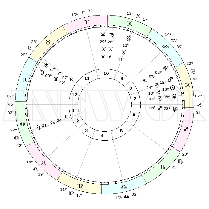 | | ΘΕΣΕΙΣ ΠΛΑΝΗΤΩΝ ΑΣΤΡΟΛΟΓΙΚΟΥ ΧΑΡΤΗ ΤΗΣ ΣΤΙΓΜΗΣ ΑΥΤΗΣ | | | | Πλανήτης | Ζώδιο | Μοίρες | Δεκαήμ. | Σε οίκο | Απόκλιση | | Ακμές των οίκων | | Ηλιος | Αιγόκερως | 10°04' | Δεύτερο | 8 | 23 S 03 | | 1ος | 26°41' | Ταύρος | | Σελήνη | Ταύρος | 29°27' | Τρίτο | 1 | 24 N 52 | | 2ος | 22°11' | Δίδυμοι | | Ερμής | Τοξότης | 27°55' | Τρίτο | 8 | 23 S 56 | | 3ος | 13°44' | Καρκίνος | | Αφροδίτη | Αιγόκερως | 08°36' | Πρώτο | 8 | 23 S 38 | | 4ος | 06°16' | Λέων | | Αρης | Αιγόκερως | 12°19' | Δεύτερο | 8 | 23 S 45 | | 5ος | 04°10' | Παρθένος | | Δίας | Καρκίνος | 21°25'R | Τρίτο | 3 | 21 N 58 | | 6ος | 12°04' | Ζυγός | | Κρόνος | Ιχθείς | 26°15' | Τρίτο | 11 | 03 S 34 | | 7ος | 26°41' | Σκορπιός | | Ουρανός | Ταύρος | 27°57'R | Τρίτο | 1 | 19 N 30 | | 8ος | 22°11' | Τοξότης | | Ποσειδώνας | Ιχθείς | 29°30' | Τρίτο | 11 | 01 S 25 | | 9ος | 13°44' | Αιγόκερως | | Πλούτωνας | Υδροχόος | 02°42' | Πρώτο | 9 | 23 S 13 | | 10ος | 06°16' | Υδροχόος | | Β. Δεσμός | Ιχθείς | 12°12' | Δεύτερο | 11 | 06 S 59 | | 11ος | 04°10' | Ιχθείς | | Ωροσκόπος | Ταύρος | 26°41' | Τρίτο | | | 12ος | 12°04' | Κριός | | Μεσουράνημα | Υδροχόος | 06°16' | Πρώτο | | | |