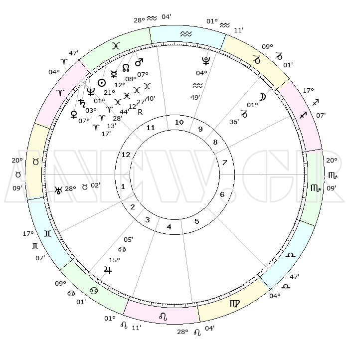 | | ΘΕΣΕΙΣ ΠΛΑΝΗΤΩΝ ΑΣΤΡΟΛΟΓΙΚΟΥ ΧΑΡΤΗ ΤΗΣ ΣΤΙΓΜΗΣ ΑΥΤΗΣ | | | | Πλανήτης | Ζώδιο | Μοίρες | Δεκαήμ. | Σε οίκο | Απόκλιση | | Ακμές των οίκων | | Ηλιος | Ιχθείς | 21°40' | Τρίτο | 12 | 03 S 18 | | 1ος | 21°07' | Κριός | | Σελήνη | Αιγόκερως | 00°55' | Πρώτο | 9 | 28 S 19 | | 2ος | 25°48' | Ταύρος | | Ερμής | Ιχθείς | 12°15'R | Δεύτερο | 12 | 04 S 11 | | 3ος | 20°21' | Δίδυμοι | | Αφροδίτη | Κριός | 07°13' | Πρώτο | 12 | 01 N 50 | | 4ος | 12°04' | Καρκίνος | | Αρης | Ιχθείς | 07°37' | Πρώτο | 12 | 09 S 43 | | 5ος | 05°40' | Λέων | | Δίας | Καρκίνος | 15°05' | Δεύτερο | 4 | 22 N 56 | | 6ος | 06°40' | Παρθένος | | Κρόνος | Κριός | 03°12' | Πρώτο | 12 | 00 S 41 | | 7ος | 21°07' | Ζυγός | | Ουρανός | Ταύρος | 28°02' | Τρίτο | 2 | 19 N 33 | | 8ος | 25°48' | Σκορπιός | | Ποσειδώνας | Κριός | 01°28' | Πρώτο | 12 | 00 S 37 | | 9ος | 20°21' | Τοξότης | | Πλούτωνας | Υδροχόος | 04°49' | Πρώτο | 10 | 22 S 50 | | 10ος | 12°04' | Αιγόκερως | | Β. Δεσμός | Ιχθείς | 08°27' | Πρώτο | 12 | 08 S 24 | | 11ος | 05°40' | Υδροχόος | | Ωροσκόπος | Κριός | 21°07' | Τρίτο | | | 12ος | 06°40' | Ιχθείς | | Μεσουράνημα | Αιγόκερως | 12°04' | Δεύτερο | | | |