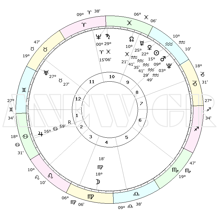 | | ΘΕΣΕΙΣ ΠΛΑΝΗΤΩΝ ΑΣΤΡΟΛΟΓΙΚΟΥ ΧΑΡΤΗ ΤΗΣ ΣΤΙΓΜΗΣ ΑΥΤΗΣ | | | | Πλανήτης | Ζώδιο | Μοίρες | Δεκαήμ. | Σε οίκο | Απόκλιση | | Ακμές των οίκων | | Ηλιος | Υδροχόος | 15°36' | Δεύτερο | 10 | 16 S 09 | | 1ος | 25°01' | Ταύρος | | Σελήνη | Παρθένος | 17°10' | Δεύτερο | 5 | 04 N 23 | | 2ος | 20°53' | Δίδυμοι | | Ερμής | Υδροχόος | 25°32' | Τρίτο | 10 | 14 S 32 | | 3ος | 12°31' | Καρκίνος | | Αφροδίτη | Υδροχόος | 22°28' | Τρίτο | 10 | 15 S 21 | | 4ος | 04°57' | Λέων | | Αρης | Υδροχόος | 09°25' | Πρώτο | 10 | 18 S 55 | | 5ος | 02°35' | Παρθένος | | Δίας | Καρκίνος | 16°59'R | Δεύτερο | 3 | 22 N 40 | | 6ος | 10°12' | Ζυγός | | Κρόνος | Ιχθείς | 29°06' | Τρίτο | 11 | 02 S 21 | | 7ος | 25°01' | Σκορπιός | | Ουρανός | Ταύρος | 27°27' | Τρίτο | 1 | 19 N 24 | | 8ος | 20°53' | Τοξότης | | Ποσειδώνας | Κριός | 00°14' | Πρώτο | 11 | 01 S 07 | | 9ος | 12°31' | Αιγόκερως | | Πλούτωνας | Υδροχόος | 03°49' | Πρώτο | 9 | 23 S 00 | | 10ος | 04°57' | Υδροχόος | | Β. Δεσμός | Ιχθείς | 10°21' | Δεύτερο | 11 | 07 S 41 | | 11ος | 02°35' | Ιχθείς | | Ωροσκόπος | Ταύρος | 25°01' | Τρίτο | | | 12ος | 10°12' | Κριός | | Μεσουράνημα | Υδροχόος | 04°57' | Πρώτο | | | |