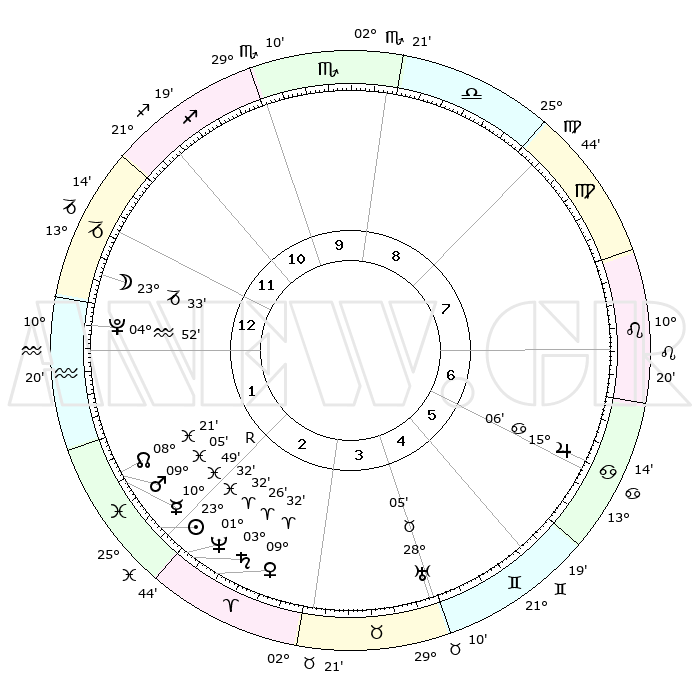 | | ΘΕΣΕΙΣ ΠΛΑΝΗΤΩΝ ΑΣΤΡΟΛΟΓΙΚΟΥ ΧΑΡΤΗ ΤΗΣ ΣΤΙΓΜΗΣ ΑΥΤΗΣ | | | | Πλανήτης | Ζώδιο | Μοίρες | Δεκαήμ. | Σε οίκο | Απόκλιση | | Ακμές των οίκων | | Ηλιος | Ιχθείς | 23°28' | Τρίτο | 2 | 02 S 36 | | 1ος | 11°07' | Αιγόκερως | | Σελήνη | Αιγόκερως | 22°40' | Τρίτο | 1 | 25 S 17 | | 2ος | 21°07' | Υδροχόος | | Ερμής | Ιχθείς | 10°52'R | Δεύτερο | 2 | 05 S 03 | | 3ος | 01°23' | Κριός | | Αφροδίτη | Κριός | 09°27' | Πρώτο | 3 | 02 N 45 | | 4ος | 03°21' | Ταύρος | | Αρης | Ιχθείς | 09°02' | Πρώτο | 2 | 09 S 11 | | 5ος | 28°03' | Ταύρος | | Δίας | Καρκίνος | 15°06' | Δεύτερο | 7 | 22 N 56 | | 6ος | 19°21' | Δίδυμοι | | Κρόνος | Κριός | 03°26' | Πρώτο | 3 | 00 S 35 | | 7ος | 11°07' | Καρκίνος | | Ουρανός | Ταύρος | 28°05' | Τρίτο | 5 | 19 N 33 | | 8ος | 21°07' | Λέων | | Ποσειδώνας | Κριός | 01°32' | Πρώτο | 3 | 00 S 35 | | 9ος | 01°23' | Ζυγός | | Πλούτωνας | Υδροχόος | 04°52' | Πρώτο | 1 | 22 S 50 | | 10ος | 03°21' | Σκορπιός | | Β. Δεσμός | Ιχθείς | 08°21' | Πρώτο | 2 | 08 S 26 | | 11ος | 28°03' | Σκορπιός | | Ωροσκόπος | Αιγόκερως | 11°07' | Δεύτερο | | | 12ος | 19°21' | Τοξότης | | Μεσουράνημα | Σκορπιός | 03°21' | Πρώτο | | | |