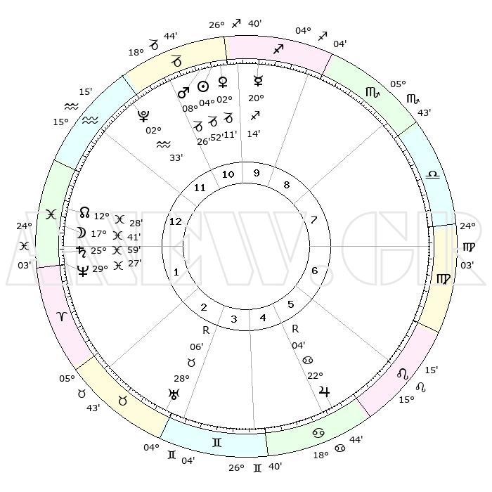 | | ΘΕΣΕΙΣ ΠΛΑΝΗΤΩΝ ΑΣΤΡΟΛΟΓΙΚΟΥ ΧΑΡΤΗ ΤΗΣ ΣΤΙΓΜΗΣ ΑΥΤΗΣ | | | | Πλανήτης | Ζώδιο | Μοίρες | Δεκαήμ. | Σε οίκο | Απόκλιση | | Ακμές των οίκων | | Ηλιος | Αιγόκερως | 04°48' | Πρώτο | 11 | 23 S 21 | | 1ος | 12°04' | Υδροχόος | | Σελήνη | Ιχθείς | 16°39' | Δεύτερο | 1 | 04 S 50 | | 2ος | 27°36' | Ιχθείς | | Ερμής | Τοξότης | 20°07' | Τρίτο | 10 | 22 S 58 | | 3ος | 03°53' | Ταύρος | | Αφροδίτη | Αιγόκερως | 02°05' | Πρώτο | 11 | 23 S 42 | | 4ος | 00°27' | Δίδυμοι | | Αρης | Αιγόκερως | 08°22' | Πρώτο | 11 | 24 S 01 | | 5ος | 22°31' | Δίδυμοι | | Δίας | Καρκίνος | 22°05'R | Τρίτο | 6 | 21 N 51 | | 6ος | 14°33' | Καρκίνος | | Κρόνος | Ιχθείς | 25°59' | Τρίτο | 1 | 03 S 41 | | 7ος | 12°04' | Λέων | | Ουρανός | Ταύρος | 28°07'R | Τρίτο | 3 | 19 N 32 | | 8ος | 27°36' | Παρθένος | | Ποσειδώνας | Ιχθείς | 29°27' | Τρίτο | 2 | 01 S 27 | | 9ος | 03°53' | Σκορπιός | | Πλούτωνας | Υδροχόος | 02°33' | Πρώτο | 12 | 23 S 15 | | 10ος | 00°27' | Τοξότης | | Β. Δεσμός | Ιχθείς | 12°28' | Δεύτερο | 1 | 06 S 53 | | 11ος | 22°31' | Τοξότης | | Ωροσκόπος | Υδροχόος | 12°04' | Δεύτερο | | | 12ος | 14°33' | Αιγόκερως | | Μεσουράνημα | Τοξότης | 00°27' | Πρώτο | | | |