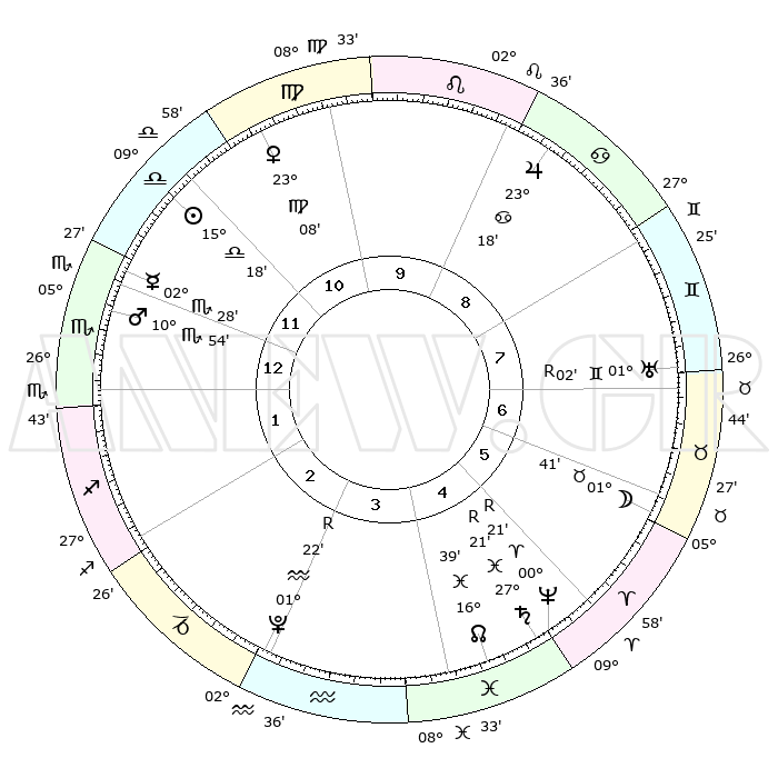 | ΘΕΣΕΙΣ ΠΛΑΝΗΤΩΝ ΑΣΤΡΟΛΟΓΙΚΟΥ ΧΑΡΤΗ ΤΗΣ ΣΤΙΓΜΗΣ ΑΥΤΗΣ | | Πλανήτης | Ζώδιο | Μοίρες | Δεκαήμ. | Σε οίκο | Απόκλιση | | Ακμές των οίκων | Ηλιος | Ζυγός | 15°13' | Δεύτερο | 12 | 05 S 59 | | 1ος | 02°34' | Σκορπιός | Σελήνη | Ταύρος | 00°26' | Πρώτο | 6 | 14 N 54 | | 2ος | 01°08' | Τοξότης | Ερμής | Σκορπιός | 02°20' | Πρώτο | 12 | 13 S 11 | | 3ος | 03°18' | Αιγόκερως | Αφροδίτη | Παρθένος | 23°02' | Τρίτο | 11 | 04 N 05 | | 4ος | 07°41' | Υδροχόος | Αρης | Σκορπιός | 10°50' | Δεύτερο | 1 | 15 S 13 | | 5ος | 10°33' | Ιχθείς | Δίας | Καρκίνος | 23°17' | Τρίτο | 9 | 21 N 28 | | 6ος | 08°59' | Κριός | Κρόνος | Ιχθείς | 27°21'R | Τρίτο | 5 | 03 S 21 | | 7ος | 02°34' | Ταύρος | Ουρανός | Δίδυμοι | 01°02'R | Πρώτο | 7 | 20 N 09 | | 8ος | 01°08' | Δίδυμοι | Ποσειδώνας | Κριός | 00°21'R | Πρώτο | 5 | 01 S 07 | | 9ος | 03°18' | Καρκίνος | Πλούτωνας | Υδροχόος | 01°22'R | Πρώτο | 3 | 23 S 32 | | 10ος | 07°41' | Λέων | Β. Δεσμός | Ιχθείς | 16°39' | Δεύτερο | 5 | 05 S 16 | | 11ος | 10°33' | Παρθένος | Ωροσκόπος | Σκορπιός | 02°34' | Πρώτο | | | 12ος | 08°59' | Ζυγός | Μεσουράνημα | Λέων | 07°41' | Πρώτο | | | |