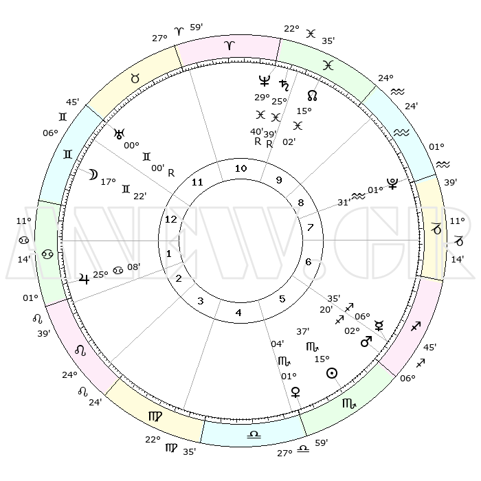 | | ΘΕΣΕΙΣ ΠΛΑΝΗΤΩΝ ΑΣΤΡΟΛΟΓΙΚΟΥ ΧΑΡΤΗ ΤΗΣ ΣΤΙΓΜΗΣ ΑΥΤΗΣ | | | | Πλανήτης | Ζώδιο | Μοίρες | Δεκαήμ. | Σε οίκο | Απόκλιση | | Ακμές των οίκων | | Ηλιος | Σκορπιός | 15°26' | Δεύτερο | 7 | 16 S 27 | | 1ος | 25°58' | Κριός | | Σελήνη | Δίδυμοι | 14°34' | Δεύτερο | 2 | 27 N 34 | | 2ος | 29°18' | Ταύρος | | Ερμής | Τοξότης | 06°32' | Πρώτο | 8 | 23 S 59 | | 3ος | 23°17' | Δίδυμοι | | Αφροδίτη | Σκορπιός | 00°50' | Πρώτο | 7 | 10 S 28 | | 4ος | 14°58' | Καρκίνος | | Αρης | Τοξότης | 02°12' | Πρώτο | 8 | 21 S 03 | | 5ος | 08°59' | Λέων | | Δίας | Καρκίνος | 25°07' | Τρίτο | 4 | 21 N 12 | | 6ος | 10°55' | Παρθένος | | Κρόνος | Ιχθείς | 25°39'R | Τρίτο | 12 | 03 S 58 | | 7ος | 25°58' | Ζυγός | | Ουρανός | Δίδυμοι | 00°01'R | Πρώτο | 2 | 19 N 57 | | 8ος | 29°18' | Σκορπιός | | Ποσειδώνας | Ιχθείς | 29°40'R | Τρίτο | 12 | 01 S 23 | | 9ος | 23°17' | Τοξότης | | Πλούτωνας | Υδροχόος | 01°31' | Πρώτο | 10 | 23 S 30 | | 10ος | 14°58' | Αιγόκερως | | Β. Δεσμός | Ιχθείς | 15°03' | Δεύτερο | 12 | 05 S 53 | | 11ος | 08°59' | Υδροχόος | | Ωροσκόπος | Κριός | 25°58' | Τρίτο | | | 12ος | 10°55' | Ιχθείς | | Μεσουράνημα | Αιγόκερως | 14°58' | Δεύτερο | | | |