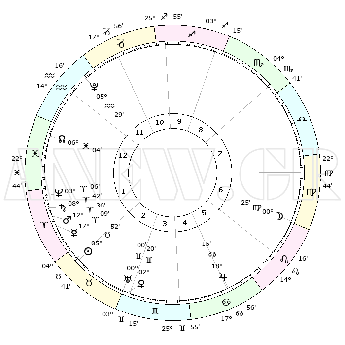 | | ΘΕΣΕΙΣ ΠΛΑΝΗΤΩΝ ΑΣΤΡΟΛΟΓΙΚΟΥ ΧΑΡΤΗ ΤΗΣ ΣΤΙΓΜΗΣ ΑΥΤΗΣ | | | | Πλανήτης | Ζώδιο | Μοίρες | Δεκαήμ. | Σε οίκο | Απόκλιση | | Ακμές των οίκων | | Ηλιος | Ταύρος | 05°48' | Πρώτο | 2 | 13 N 27 | | 1ος | 19°05' | Υδροχόος | | Σελήνη | Λέων | 29°37' | Τρίτο | 7 | 12 N 15 | | 2ος | 04°53' | Κριός | | Ερμής | Κριός | 17°03' | Δεύτερο | 2 | 04 N 30 | | 3ος | 09°47' | Ταύρος | | Αφροδίτη | Δίδυμοι | 02°15' | Πρώτο | 3 | 21 N 16 | | 4ος | 05°24' | Δίδυμοι | | Αρης | Κριός | 12°33' | Δεύτερο | 2 | 04 N 07 | | 5ος | 27°15' | Δίδυμοι | | Δίας | Καρκίνος | 18°15' | Δεύτερο | 5 | 22 N 34 | | 6ος | 19°48' | Καρκίνος | | Κρόνος | Κριός | 08°41' | Πρώτο | 2 | 01 N 27 | | 7ος | 19°05' | Λέων | | Ουρανός | Δίδυμοι | 00°00' | Πρώτο | 3 | 19 N 59 | | 8ος | 04°53' | Ζυγός | | Ποσειδώνας | Κριός | 03°06' | Πρώτο | 1 | 00 N 02 | | 9ος | 09°47' | Σκορπιός | | Πλούτωνας | Υδροχόος | 05°29' | Πρώτο | 12 | 22 S 48 | | 10ος | 05°24' | Τοξότης | | Β. Δεσμός | Ιχθείς | 06°05' | Πρώτο | 1 | 09 S 17 | | 11ος | 27°15' | Τοξότης | | Ωροσκόπος | Υδροχόος | 19°05' | Δεύτερο | | | 12ος | 19°48' | Αιγόκερως | | Μεσουράνημα | Τοξότης | 05°24' | Πρώτο | | | |
