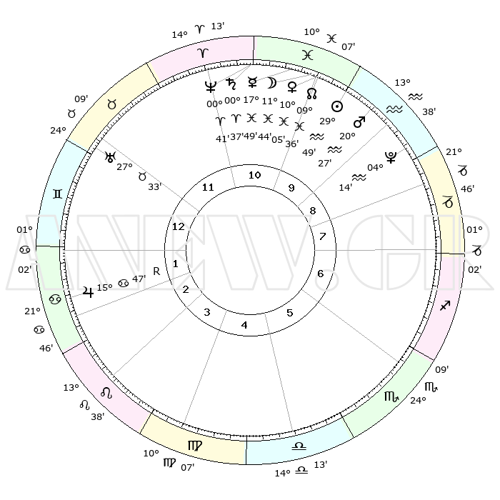 | | ΘΕΣΕΙΣ ΠΛΑΝΗΤΩΝ ΑΣΤΡΟΛΟΓΙΚΟΥ ΧΑΡΤΗ ΤΗΣ ΣΤΙΓΜΗΣ ΑΥΤΗΣ | | | | Πλανήτης | Ζώδιο | Μοίρες | Δεκαήμ. | Σε οίκο | Απόκλιση | | Ακμές των οίκων | | Ηλιος | Υδροχόος | 29°44' | Τρίτο | 10 | 11 S 34 | | 1ος | 01°03' | Δίδυμοι | | Σελήνη | Ιχθείς | 10°38' | Δεύτερο | 11 | 07 S 26 | | 2ος | 25°39' | Δίδυμοι | | Ερμής | Ιχθείς | 17°44' | Δεύτερο | 11 | 04 S 04 | | 3ος | 17°02' | Καρκίνος | | Αφροδίτη | Ιχθείς | 09°58' | Πρώτο | 11 | 09 S 11 | | 4ος | 09°52' | Λέων | | Αρης | Υδροχόος | 20°24' | Τρίτο | 10 | 15 S 43 | | 5ος | 08°31' | Παρθένος | | Δίας | Καρκίνος | 15°47'R | Δεύτερο | 2 | 22 N 50 | | 6ος | 17°08' | Ζυγός | | Κρόνος | Κριός | 00°36' | Πρώτο | 11 | 01 S 44 | | 7ος | 01°03' | Τοξότης | | Ουρανός | Ταύρος | 27°33' | Τρίτο | 12 | 19 N 26 | | 8ος | 25°39' | Τοξότης | | Ποσειδώνας | Κριός | 00°41' | Πρώτο | 11 | 00 S 56 | | 9ος | 17°02' | Αιγόκερως | | Πλούτωνας | Υδροχόος | 04°14' | Πρώτο | 9 | 22 S 55 | | 10ος | 09°52' | Υδροχόος | | Β. Δεσμός | Ιχθείς | 09°36' | Πρώτο | 11 | 07 S 58 | | 11ος | 08°31' | Ιχθείς | | Ωροσκόπος | Δίδυμοι | 01°03' | Πρώτο | | | 12ος | 17°08' | Κριός | | Μεσουράνημα | Υδροχόος | 09°52' | Πρώτο | | | |