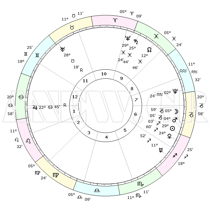 | | ΘΕΣΕΙΣ ΠΛΑΝΗΤΩΝ ΑΣΤΡΟΛΟΓΙΚΟΥ ΧΑΡΤΗ ΤΗΣ ΣΤΙΓΜΗΣ ΑΥΤΗΣ | | | | Πλανήτης | Ζώδιο | Μοίρες | Δεκαήμ. | Σε οίκο | Απόκλιση | | Ακμές των οίκων | | Ηλιος | Τοξότης | 28°59' | Τρίτο | 7 | 23 S 26 | | 1ος | 25°57' | Δίδυμοι | | Σελήνη | Αιγόκερως | 05°01' | Πρώτο | 7 | 27 S 56 | | 2ος | 17°01' | Καρκίνος | | Ερμής | Τοξότης | 11°45' | Δεύτερο | 6 | 21 S 23 | | 3ος | 08°35' | Λέων | | Αφροδίτη | Τοξότης | 24°54' | Τρίτο | 6 | 23 S 24 | | 4ος | 04°17' | Παρθένος | | Αρης | Αιγόκερως | 04°01' | Πρώτο | 7 | 24 S 11 | | 5ος | 07°32' | Ζυγός | | Δίας | Καρκίνος | 22°45'R | Τρίτο | 2 | 21 N 43 | | 6ος | 17°46' | Σκορπιός | | Κρόνος | Ιχθείς | 25°44' | Τρίτο | 10 | 03 S 48 | | 7ος | 25°57' | Τοξότης | | Ουρανός | Ταύρος | 28°18'R | Τρίτο | 12 | 19 N 35 | | 8ος | 17°01' | Αιγόκερως | | Ποσειδώνας | Ιχθείς | 29°24' | Τρίτο | 10 | 01 S 28 | | 9ος | 08°35' | Υδροχόος | | Πλούτωνας | Υδροχόος | 02°24' | Πρώτο | 8 | 23 S 17 | | 10ος | 04°17' | Ιχθείς | | Β. Δεσμός | Ιχθείς | 12°46' | Δεύτερο | 10 | 06 S 46 | | 11ος | 07°32' | Κριός | | Ωροσκόπος | Δίδυμοι | 25°57' | Τρίτο | | | 12ος | 17°46' | Ταύρος | | Μεσουράνημα | Ιχθείς | 04°17' | Πρώτο | | | |