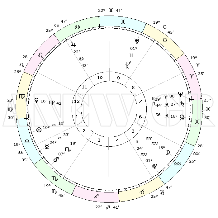 | ΘΕΣΕΙΣ ΠΛΑΝΗΤΩΝ ΑΣΤΡΟΛΟΓΙΚΟΥ ΧΑΡΤΗ ΤΗΣ ΣΤΙΓΜΗΣ ΑΥΤΗΣ | | Πλανήτης | Ζώδιο | Μοίρες | Δεκαήμ. | Σε οίκο | Απόκλιση | | Ακμές των οίκων | Ηλιος | Ζυγός | 10°06' | Δεύτερο | 2 | 04 S 00 | | 1ος | 03°56' | Παρθένος | Σελήνη | Υδροχόος | 16°06' | Δεύτερο | 6 | 18 S 41 | | 2ος | 28°12' | Παρθένος | Ερμής | Ζυγός | 24°26' | Τρίτο | 2 | 09 S 48 | | 3ος | 27°12' | Ζυγός | Αφροδίτη | Παρθένος | 16°37' | Δεύτερο | 1 | 06 N 31 | | 4ος | 00°09' | Τοξότης | Αρης | Σκορπιός | 07°17' | Πρώτο | 3 | 14 S 02 | | 5ος | 04°05' | Αιγόκερως | Δίας | Καρκίνος | 22°43' | Τρίτο | 11 | 21 N 33 | | 6ος | 05°45' | Υδροχόος | Κρόνος | Ιχθείς | 27°44'R | Τρίτο | 7 | 03 S 12 | | 7ος | 03°56' | Ιχθείς | Ουρανός | Δίδυμοι | 01°10'R | Πρώτο | 10 | 20 N 11 | | 8ος | 28°12' | Ιχθείς | Ποσειδώνας | Κριός | 00°29'R | Πρώτο | 8 | 01 S 04 | | 9ος | 27°12' | Κριός | Πλούτωνας | Υδροχόος | 01°24'R | Πρώτο | 5 | 23 S 32 | | 10ος | 00°09' | Δίδυμοι | Β. Δεσμός | Ιχθείς | 16°56' | Δεύτερο | 7 | 05 S 10 | | 11ος | 04°05' | Καρκίνος | Ωροσκόπος | Παρθένος | 03°56' | Πρώτο | | | 12ος | 05°45' | Λέων | Μεσουράνημα | Δίδυμοι | 00°09' | Πρώτο | | | |