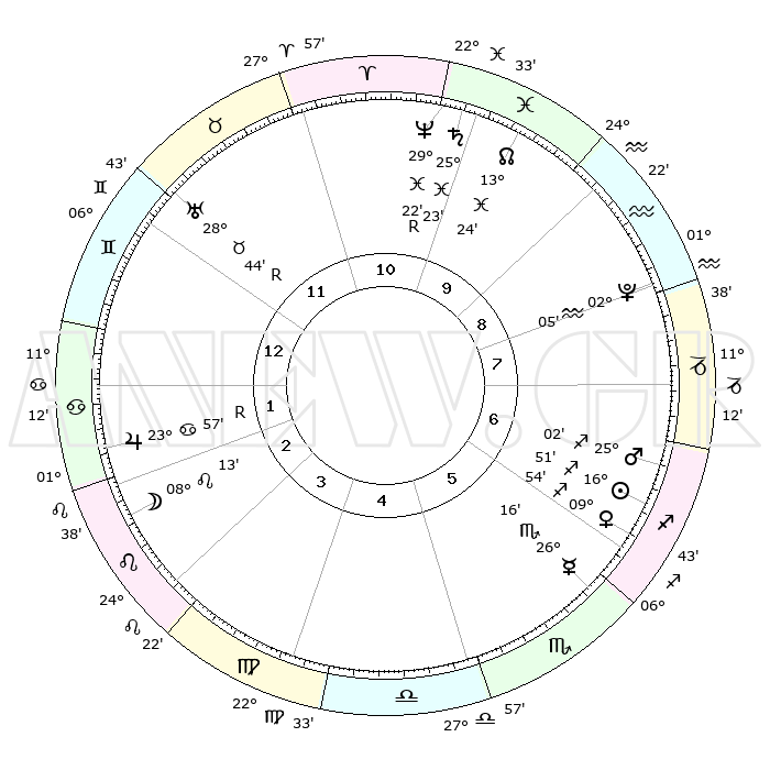| | ΘΕΣΕΙΣ ΠΛΑΝΗΤΩΝ ΑΣΤΡΟΛΟΓΙΚΟΥ ΧΑΡΤΗ ΤΗΣ ΣΤΙΓΜΗΣ ΑΥΤΗΣ | | | | Πλανήτης | Ζώδιο | Μοίρες | Δεκαήμ. | Σε οίκο | Απόκλιση | | Ακμές των οίκων | | Ηλιος | Τοξότης | 16°48' | Δεύτερο | 6 | 22 S 47 | | 1ος | 26°51' | Δίδυμοι | | Σελήνη | Λέων | 07°36' | Πρώτο | 2 | 21 N 12 | | 2ος | 17°51' | Καρκίνος | | Ερμής | Σκορπιός | 26°13' | Τρίτο | 6 | 17 S 06 | | 3ος | 09°28' | Λέων | | Αφροδίτη | Τοξότης | 09°50' | Πρώτο | 6 | 21 S 30 | | 4ος | 05°17' | Παρθένος | | Αρης | Τοξότης | 25°00' | Τρίτο | 6 | 24 S 04 | | 5ος | 08°42' | Ζυγός | | Δίας | Καρκίνος | 23°58'R | Τρίτο | 2 | 21 N 29 | | 6ος | 18°54' | Σκορπιός | | Κρόνος | Ιχθείς | 25°23' | Τρίτο | 10 | 03 S 59 | | 7ος | 26°51' | Τοξότης | | Ουρανός | Ταύρος | 28°44'R | Τρίτο | 12 | 19 N 40 | | 8ος | 17°51' | Αιγόκερως | | Ποσειδώνας | Ιχθείς | 29°22'R | Τρίτο | 10 | 01 S 29 | | 9ος | 09°28' | Υδροχόος | | Πλούτωνας | Υδροχόος | 02°05' | Πρώτο | 8 | 23 S 22 | | 10ος | 05°17' | Ιχθείς | | Β. Δεσμός | Ιχθείς | 13°24' | Δεύτερο | 10 | 06 S 31 | | 11ος | 08°42' | Κριός | | Ωροσκόπος | Δίδυμοι | 26°51' | Τρίτο | | | 12ος | 18°54' | Ταύρος | | Μεσουράνημα | Ιχθείς | 05°17' | Πρώτο | | | |