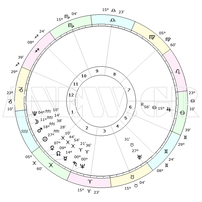 | | ΘΕΣΕΙΣ ΠΛΑΝΗΤΩΝ ΑΣΤΡΟΛΟΓΙΚΟΥ ΧΑΡΤΗ ΤΗΣ ΣΤΙΓΜΗΣ ΑΥΤΗΣ | | | | Πλανήτης | Ζώδιο | Μοίρες | Δεκαήμ. | Σε οίκο | Απόκλιση | | Ακμές των οίκων | | Ηλιος | Υδροχόος | 27°24' | Τρίτο | 2 | 12 S 22 | | 1ος | 00°17' | Αιγόκερως | | Σελήνη | Υδροχόος | 10°26' | Δεύτερο | 2 | 20 S 03 | | 2ος | 07°30' | Υδροχόος | | Ερμής | Ιχθείς | 14°49' | Δεύτερο | 2 | 05 S 43 | | 3ος | 17°31' | Ιχθείς | | Αφροδίτη | Ιχθείς | 07°05' | Πρώτο | 2 | 10 S 16 | | 4ος | 21°25' | Κριός | | Αρης | Υδροχόος | 18°35' | Δεύτερο | 2 | 16 S 17 | | 5ος | 17°41' | Ταύρος | | Δίας | Καρκίνος | 15°57'R | Δεύτερο | 7 | 22 N 48 | | 6ος | 09°28' | Δίδυμοι | | Κρόνος | Κριός | 00°21' | Πρώτο | 3 | 01 S 50 | | 7ος | 00°17' | Καρκίνος | | Ουρανός | Ταύρος | 27°31' | Τρίτο | 5 | 19 N 25 | | 8ος | 07°30' | Λέων | | Ποσειδώνας | Κριός | 00°36' | Πρώτο | 3 | 00 S 58 | | 9ος | 17°32' | Παρθένος | | Πλούτωνας | Υδροχόος | 04°10' | Πρώτο | 1 | 22 S 56 | | 10ος | 21°25' | Ζυγός | | Β. Δεσμός | Ιχθείς | 09°44' | Πρώτο | 2 | 07 S 55 | | 11ος | 17°41' | Σκορπιός | | Ωροσκόπος | Αιγόκερως | 00°17' | Πρώτο | | | 12ος | 09°28' | Τοξότης | | Μεσουράνημα | Ζυγός | 21°25' | Τρίτο | | | |