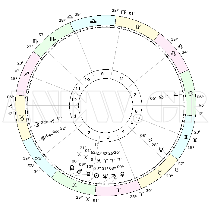 | | ΘΕΣΕΙΣ ΠΛΑΝΗΤΩΝ ΑΣΤΡΟΛΟΓΙΚΟΥ ΧΑΡΤΗ ΤΗΣ ΣΤΙΓΜΗΣ ΑΥΤΗΣ | | | | Πλανήτης | Ζώδιο | Μοίρες | Δεκαήμ. | Σε οίκο | Απόκλιση | | Ακμές των οίκων | | Ηλιος | Ιχθείς | 23°23' | Τρίτο | 3 | 02 S 38 | | 1ος | 15°08' | Τοξότης | | Σελήνη | Αιγόκερως | 21°42' | Τρίτο | 2 | 25 S 31 | | 2ος | 18°51' | Αιγόκερως | | Ερμής | Ιχθείς | 10°55'R | Δεύτερο | 3 | 05 S 01 | | 3ος | 27°04' | Υδροχόος | | Αφροδίτη | Κριός | 09°21' | Πρώτο | 4 | 02 N 43 | | 4ος | 02°47' | Κριός | | Αρης | Ιχθείς | 08°58' | Πρώτο | 3 | 09 S 13 | | 5ος | 01°34' | Ταύρος | | Δίας | Καρκίνος | 15°06' | Δεύτερο | 7 | 22 N 56 | | 6ος | 24°42' | Ταύρος | | Κρόνος | Κριός | 03°25' | Πρώτο | 4 | 00 S 36 | | 7ος | 15°08' | Δίδυμοι | | Ουρανός | Ταύρος | 28°05' | Τρίτο | 6 | 19 N 33 | | 8ος | 18°51' | Καρκίνος | | Ποσειδώνας | Κριός | 01°32' | Πρώτο | 3 | 00 S 35 | | 9ος | 27°04' | Λέων | | Πλούτωνας | Υδροχόος | 04°52' | Πρώτο | 2 | 22 S 50 | | 10ος | 02°47' | Ζυγός | | Β. Δεσμός | Ιχθείς | 08°21' | Πρώτο | 3 | 08 S 26 | | 11ος | 01°34' | Σκορπιός | | Ωροσκόπος | Τοξότης | 15°08' | Δεύτερο | | | 12ος | 24°42' | Σκορπιός | | Μεσουράνημα | Ζυγός | 02°47' | Πρώτο | | | |