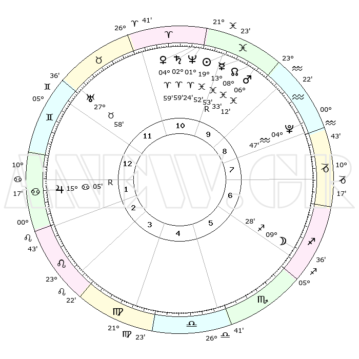 | | ΘΕΣΕΙΣ ΠΛΑΝΗΤΩΝ ΑΣΤΡΟΛΟΓΙΚΟΥ ΧΑΡΤΗ ΤΗΣ ΣΤΙΓΜΗΣ ΑΥΤΗΣ | | | | Πλανήτης | Ζώδιο | Μοίρες | Δεκαήμ. | Σε οίκο | Απόκλιση | | Ακμές των οίκων | | Ηλιος | Ιχθείς | 19°49' | Δεύτερο | 10 | 04 S 02 | | 1ος | 21°15' | Δίδυμοι | | Σελήνη | Τοξότης | 08°47' | Πρώτο | 6 | 26 S 58 | | 2ος | 12°46' | Καρκίνος | | Ερμής | Ιχθείς | 13°57'R | Δεύτερο | 10 | 03 S 14 | | 3ος | 04°08' | Λέων | | Αφροδίτη | Κριός | 04°55' | Πρώτο | 11 | 00 N 53 | | 4ος | 29°09' | Λέων | | Αρης | Ιχθείς | 06°09' | Πρώτο | 10 | 10 S 16 | | 5ος | 01°34' | Ζυγός | | Δίας | Καρκίνος | 15°05'R | Δεύτερο | 2 | 22 N 56 | | 6ος | 11°52' | Σκορπιός | | Κρόνος | Κριός | 02°59' | Πρώτο | 11 | 00 S 46 | | 7ος | 21°15' | Τοξότης | | Ουρανός | Ταύρος | 27°58' | Τρίτο | 12 | 19 N 32 | | 8ος | 12°46' | Αιγόκερως | | Ποσειδώνας | Κριός | 01°24' | Πρώτο | 10 | 00 S 39 | | 9ος | 04°08' | Υδροχόος | | Πλούτωνας | Υδροχόος | 04°47' | Πρώτο | 9 | 22 S 50 | | 10ος | 29°09' | Υδροχόος | | Β. Δεσμός | Ιχθείς | 08°33' | Πρώτο | 10 | 08 S 22 | | 11ος | 01°34' | Κριός | | Ωροσκόπος | Δίδυμοι | 21°15' | Τρίτο | | | 12ος | 11°52' | Ταύρος | | Μεσουράνημα | Υδροχόος | 29°09' | Τρίτο | | | |