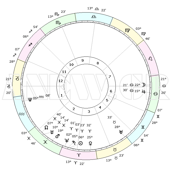 | | ΘΕΣΕΙΣ ΠΛΑΝΗΤΩΝ ΑΣΤΡΟΛΟΓΙΚΟΥ ΧΑΡΤΗ ΤΗΣ ΣΤΙΓΜΗΣ ΑΥΤΗΣ | | | | Πλανήτης | Ζώδιο | Μοίρες | Δεκαήμ. | Σε οίκο | Απόκλιση | | Ακμές των οίκων | | Ηλιος | Κριός | 06°18' | Πρώτο | 3 | 02 N 30 | | 1ος | 24°15' | Τοξότης | | Σελήνη | Καρκίνος | 21°17' | Τρίτο | 7 | 25 N 33 | | 2ος | 29°60' | Αιγόκερως | | Ερμής | Ιχθείς | 10°12' | Δεύτερο | 3 | 08 S 07 | | 3ος | 09°28' | Ιχθείς | | Αφροδίτη | Κριός | 25°26' | Τρίτο | 4 | 09 N 14 | | 4ος | 14°15' | Κριός | | Αρης | Ιχθείς | 19°11' | Δεύτερο | 3 | 05 S 15 | | 5ος | 11°30' | Ταύρος | | Δίας | Καρκίνος | 15°29' | Δεύτερο | 7 | 22 N 54 | | 6ος | 03°44' | Δίδυμοι | | Κρόνος | Κριός | 05°02' | Πρώτο | 3 | 00 N 03 | | 7ος | 24°15' | Δίδυμοι | | Ουρανός | Ταύρος | 28°33' | Τρίτο | 5 | 19 N 40 | | 8ος | 29°60' | Καρκίνος | | Ποσειδώνας | Κριός | 02°01' | Πρώτο | 3 | 00 S 24 | | 9ος | 09°28' | Παρθένος | | Πλούτωνας | Υδροχόος | 05°08' | Πρώτο | 2 | 22 S 48 | | 10ος | 14°15' | Ζυγός | | Β. Δεσμός | Ιχθείς | 07°40' | Πρώτο | 2 | 08 S 41 | | 11ος | 11°30' | Σκορπιός | | Ωροσκόπος | Τοξότης | 24°15' | Τρίτο | | | 12ος | 03°44' | Τοξότης | | Μεσουράνημα | Ζυγός | 14°15' | Δεύτερο | | | |