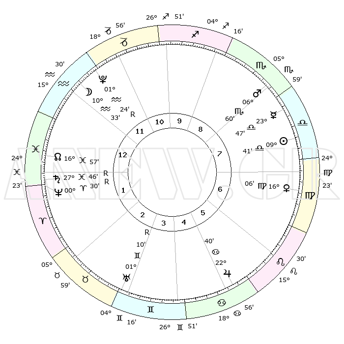 | ΘΕΣΕΙΣ ΠΛΑΝΗΤΩΝ ΑΣΤΡΟΛΟΓΙΚΟΥ ΧΑΡΤΗ ΤΗΣ ΣΤΙΓΜΗΣ ΑΥΤΗΣ | | Πλανήτης | Ζώδιο | Μοίρες | Δεκαήμ. | Σε οίκο | Απόκλιση | | Ακμές των οίκων | Ηλιος | Ζυγός | 09°38' | Πρώτο | 8 | 03 S 49 | | 1ος | 20°08' | Υδροχόος | Σελήνη | Υδροχόος | 09°45' | Πρώτο | 12 | 20 S 57 | | 2ος | 05°57' | Κριός | Ερμής | Ζυγός | 23°41' | Τρίτο | 8 | 09 S 28 | | 3ος | 10°38' | Ταύρος | Αφροδίτη | Παρθένος | 16°02' | Δεύτερο | 7 | 06 N 44 | | 4ος | 06°08' | Δίδυμοι | Αρης | Σκορπιός | 06°57' | Πρώτο | 8 | 13 S 55 | | 5ος | 27°57' | Δίδυμοι | Δίας | Καρκίνος | 22°39' | Τρίτο | 6 | 21 N 33 | | 6ος | 20°35' | Καρκίνος | Κρόνος | Ιχθείς | 27°46'R | Τρίτο | 1 | 03 S 12 | | 7ος | 20°08' | Λέων | Ουρανός | Δίδυμοι | 01°10'R | Πρώτο | 3 | 20 N 11 | | 8ος | 05°57' | Ζυγός | Ποσειδώνας | Κριός | 00°30'R | Πρώτο | 1 | 01 S 04 | | 9ος | 10°38' | Σκορπιός | Πλούτωνας | Υδροχόος | 01°24'R | Πρώτο | 12 | 23 S 32 | | 10ος | 06°08' | Τοξότης | Β. Δεσμός | Ιχθείς | 16°57' | Δεύτερο | 1 | 05 S 09 | | 11ος | 27°57' | Τοξότης | Ωροσκόπος | Υδροχόος | 20°08' | Τρίτο | | | 12ος | 20°35' | Αιγόκερως | Μεσουράνημα | Τοξότης | 06°08' | Πρώτο | | | |