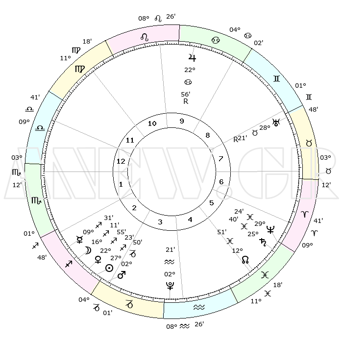 | | ΘΕΣΕΙΣ ΠΛΑΝΗΤΩΝ ΑΣΤΡΟΛΟΓΙΚΟΥ ΧΑΡΤΗ ΤΗΣ ΣΤΙΓΜΗΣ ΑΥΤΗΣ | | | | Πλανήτης | Ζώδιο | Μοίρες | Δεκαήμ. | Σε οίκο | Απόκλιση | | Ακμές των οίκων | | Ηλιος | Τοξότης | 27°18' | Τρίτο | 3 | 23 S 24 | | 1ος | 09°13' | Ζυγός | | Σελήνη | Τοξότης | 15°12' | Δεύτερο | 3 | 27 S 35 | | 2ος | 06°25' | Σκορπιός | | Ερμής | Τοξότης | 09°24' | Πρώτο | 3 | 20 S 50 | | 3ος | 07°13' | Τοξότης | | Αφροδίτη | Τοξότης | 22°49' | Τρίτο | 3 | 23 S 14 | | 4ος | 10°22' | Αιγόκερως | | Αρης | Αιγόκερως | 02°46' | Πρώτο | 3 | 24 S 12 | | 5ος | 13°18' | Υδροχόος | | Δίας | Καρκίνος | 22°57'R | Τρίτο | 10 | 21 N 41 | | 6ος | 13°21' | Ιχθείς | | Κρόνος | Ιχθείς | 25°40' | Τρίτο | 6 | 03 S 50 | | 7ος | 09°13' | Κριός | | Ουρανός | Ταύρος | 28°21'R | Τρίτο | 8 | 19 N 36 | | 8ος | 06°25' | Ταύρος | | Ποσειδώνας | Ιχθείς | 29°24' | Τρίτο | 6 | 01 S 28 | | 9ος | 07°13' | Δίδυμοι | | Πλούτωνας | Υδροχόος | 02°21' | Πρώτο | 4 | 23 S 18 | | 10ος | 10°22' | Καρκίνος | | Β. Δεσμός | Ιχθείς | 12°52' | Δεύτερο | 5 | 06 S 44 | | 11ος | 13°18' | Λέων | | Ωροσκόπος | Ζυγός | 09°13' | Πρώτο | | | 12ος | 13°21' | Παρθένος | | Μεσουράνημα | Καρκίνος | 10°22' | Δεύτερο | | | |