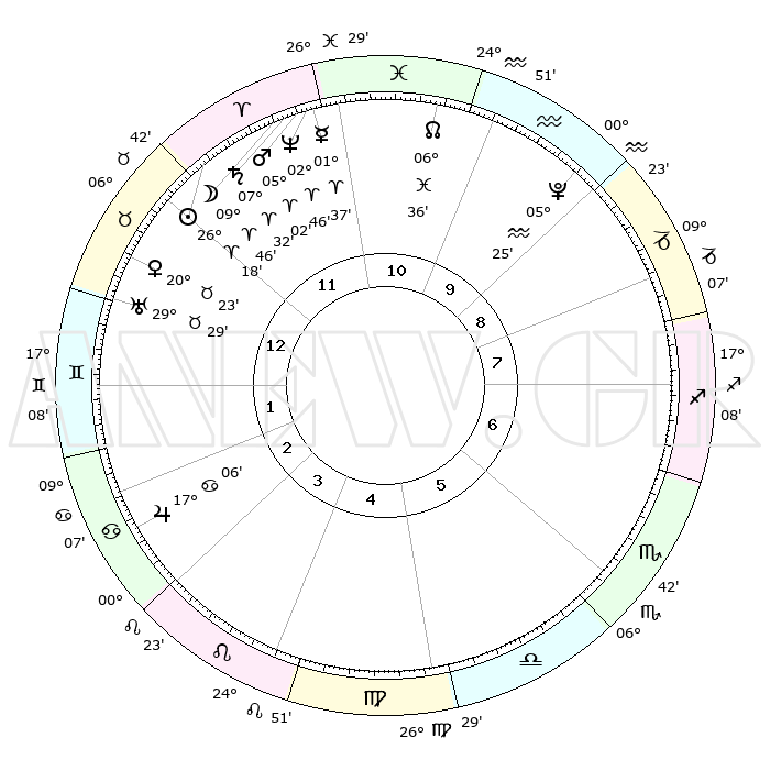 | | ΘΕΣΕΙΣ ΠΛΑΝΗΤΩΝ ΑΣΤΡΟΛΟΓΙΚΟΥ ΧΑΡΤΗ ΤΗΣ ΣΤΙΓΜΗΣ ΑΥΤΗΣ | | | | Πλανήτης | Ζώδιο | Μοίρες | Δεκαήμ. | Σε οίκο | Απόκλιση | | Ακμές των οίκων | | Ηλιος | Κριός | 26°14' | Τρίτο | 12 | 10 N 07 | | 1ος | 18°24' | Ταύρος | | Σελήνη | Κριός | 08°47' | Πρώτο | 12 | 05 N 53 | | 2ος | 15°47' | Δίδυμοι | | Ερμής | Κριός | 01°31' | Πρώτο | 11 | 01 S 48 | | 3ος | 07°48' | Καρκίνος | | Αφροδίτη | Ταύρος | 20°18' | Τρίτο | 1 | 18 N 02 | | 4ος | 29°53' | Καρκίνος | | Αρης | Κριός | 04°59' | Πρώτο | 12 | 01 N 05 | | 5ος | 26°31' | Λέων | | Δίας | Καρκίνος | 17°06' | Δεύτερο | 3 | 22 N 43 | | 6ος | 02°54' | Ζυγός | | Κρόνος | Κριός | 07°32' | Πρώτο | 12 | 01 N 01 | | 7ος | 18°24' | Σκορπιός | | Ουρανός | Ταύρος | 29°29' | Τρίτο | 1 | 19 N 52 | | 8ος | 15°47' | Τοξότης | | Ποσειδώνας | Κριός | 02°46' | Πρώτο | 11 | 00 S 06 | | 9ος | 07°48' | Αιγόκερως | | Πλούτωνας | Υδροχόος | 05°25' | Πρώτο | 10 | 22 S 47 | | 10ος | 29°53' | Αιγόκερως | | Β. Δεσμός | Ιχθείς | 06°36' | Πρώτο | 11 | 09 S 05 | | 11ος | 26°31' | Υδροχόος | | Ωροσκόπος | Ταύρος | 18°24' | Δεύτερο | | | 12ος | 02°54' | Κριός | | Μεσουράνημα | Αιγόκερως | 29°53' | Τρίτο | | | |