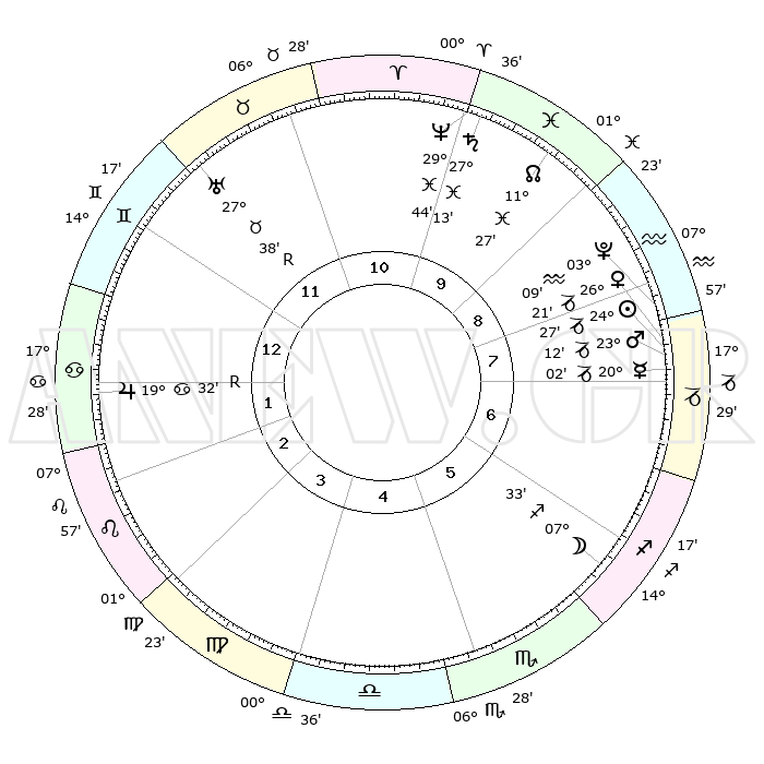 | | ΘΕΣΕΙΣ ΠΛΑΝΗΤΩΝ ΑΣΤΡΟΛΟΓΙΚΟΥ ΧΑΡΤΗ ΤΗΣ ΣΤΙΓΜΗΣ ΑΥΤΗΣ | | | | Πλανήτης | Ζώδιο | Μοίρες | Δεκαήμ. | Σε οίκο | Απόκλιση | | Ακμές των οίκων | | Ηλιος | Αιγόκερως | 24°22' | Τρίτο | 8 | 21 S 14 | | 1ος | 22°40' | Δίδυμοι | | Σελήνη | Τοξότης | 06°38' | Πρώτο | 6 | 26 S 27 | | 2ος | 14°02' | Καρκίνος | | Ερμής | Αιγόκερως | 19°54' | Δεύτερο | 8 | 23 S 42 | | 3ος | 05°27' | Λέων | | Αφροδίτη | Αιγόκερως | 26°15' | Τρίτο | 8 | 21 S 51 | | 4ος | 00°40' | Παρθένος | | Αρης | Αιγόκερως | 23°08' | Τρίτο | 8 | 22 S 24 | | 5ος | 03°20' | Ζυγός | | Δίας | Καρκίνος | 19°32'R | Δεύτερο | 2 | 22 N 17 | | 6ος | 13°38' | Σκορπιός | | Κρόνος | Ιχθείς | 27°13' | Τρίτο | 10 | 03 S 09 | | 7ος | 22°40' | Τοξότης | | Ουρανός | Ταύρος | 27°38'R | Τρίτο | 12 | 19 N 26 | | 8ος | 14°02' | Αιγόκερως | | Ποσειδώνας | Ιχθείς | 29°44' | Τρίτο | 10 | 01 S 19 | | 9ος | 05°27' | Υδροχόος | | Πλούτωνας | Υδροχόος | 03°09' | Πρώτο | 8 | 23 S 08 | | 10ος | 00°40' | Ιχθείς | | Β. Δεσμός | Ιχθείς | 11°27' | Δεύτερο | 10 | 07 S 16 | | 11ος | 03°20' | Κριός | | Ωροσκόπος | Δίδυμοι | 22°40' | Τρίτο | | | 12ος | 13°38' | Ταύρος | | Μεσουράνημα | Ιχθείς | 00°40' | Πρώτο | | | |