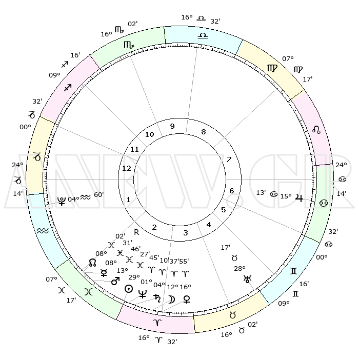 | | ΘΕΣΕΙΣ ΠΛΑΝΗΤΩΝ ΑΣΤΡΟΛΟΓΙΚΟΥ ΧΑΡΤΗ ΤΗΣ ΣΤΙΓΜΗΣ ΑΥΤΗΣ | | | | Πλανήτης | Ζώδιο | Μοίρες | Δεκαήμ. | Σε οίκο | Απόκλιση | | Ακμές των οίκων | | Ηλιος | Ιχθείς | 29°23' | Τρίτο | 3 | 00 S 15 | | 1ος | 29°19' | Τοξότης | | Σελήνη | Κριός | 11°38' | Δεύτερο | 3 | 07 N 13 | | 2ος | 06°18' | Υδροχόος | | Ερμής | Ιχθείς | 08°31'R | Πρώτο | 2 | 07 S 16 | | 3ος | 16°15' | Ιχθείς | | Αφροδίτη | Κριός | 16°49' | Δεύτερο | 3 | 05 N 47 | | 4ος | 20°18' | Κριός | | Αρης | Ιχθείς | 13°43' | Δεύτερο | 2 | 07 S 24 | | 5ος | 16°43' | Ταύρος | | Δίας | Καρκίνος | 15°13' | Δεύτερο | 7 | 22 N 56 | | 6ος | 08°34' | Δίδυμοι | | Κρόνος | Κριός | 04°10' | Πρώτο | 3 | 00 S 18 | | 7ος | 29°19' | Δίδυμοι | | Ουρανός | Ταύρος | 28°17' | Τρίτο | 5 | 19 N 36 | | 8ος | 06°18' | Λέων | | Ποσειδώνας | Κριός | 01°45' | Πρώτο | 3 | 00 S 30 | | 9ος | 16°15' | Παρθένος | | Πλούτωνας | Υδροχόος | 04°60' | Πρώτο | 1 | 22 S 49 | | 10ος | 20°18' | Ζυγός | | Β. Δεσμός | Ιχθείς | 08°02' | Πρώτο | 2 | 08 S 33 | | 11ος | 16°43' | Σκορπιός | | Ωροσκόπος | Τοξότης | 29°19' | Τρίτο | | | 12ος | 08°34' | Τοξότης | | Μεσουράνημα | Ζυγός | 20°18' | Τρίτο | | | |
