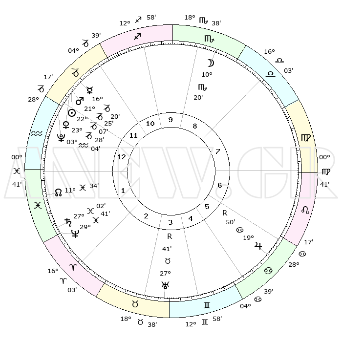 | | ΘΕΣΕΙΣ ΠΛΑΝΗΤΩΝ ΑΣΤΡΟΛΟΓΙΚΟΥ ΧΑΡΤΗ ΤΗΣ ΣΤΙΓΜΗΣ ΑΥΤΗΣ | | | | Πλανήτης | Ζώδιο | Μοίρες | Δεκαήμ. | Σε οίκο | Απόκλιση | | Ακμές των οίκων | | Ηλιος | Αιγόκερως | 22°03' | Τρίτο | 12 | 21 S 38 | | 1ος | 29°17' | Αιγόκερως | | Σελήνη | Σκορπιός | 09°34' | Πρώτο | 9 | 18 S 51 | | 2ος | 13°16' | Ιχθείς | | Ερμής | Αιγόκερως | 16°14' | Δεύτερο | 12 | 24 S 03 | | 3ος | 21°49' | Κριός | | Αφροδίτη | Αιγόκερως | 23°23' | Τρίτο | 12 | 22 S 17 | | 4ος | 20°24' | Ταύρος | | Αρης | Αιγόκερως | 21°22' | Τρίτο | 12 | 22 S 41 | | 5ος | 13°13' | Δίδυμοι | | Δίας | Καρκίνος | 19°51'R | Δεύτερο | 6 | 22 N 14 | | 6ος | 04°37' | Καρκίνος | | Κρόνος | Ιχθείς | 27°02' | Τρίτο | 2 | 03 S 13 | | 7ος | 29°17' | Καρκίνος | | Ουρανός | Ταύρος | 27°41'R | Τρίτο | 4 | 19 N 27 | | 8ος | 13°16' | Παρθένος | | Ποσειδώνας | Ιχθείς | 29°41' | Τρίτο | 2 | 01 S 21 | | 9ος | 21°49' | Ζυγός | | Πλούτωνας | Υδροχόος | 03°04' | Πρώτο | 1 | 23 S 09 | | 10ος | 20°24' | Σκορπιός | | Β. Δεσμός | Ιχθείς | 11°34' | Δεύτερο | 1 | 07 S 13 | | 11ος | 13°13' | Τοξότης | | Ωροσκόπος | Αιγόκερως | 29°17' | Τρίτο | | | 12ος | 04°37' | Αιγόκερως | | Μεσουράνημα | Σκορπιός | 20°24' | Τρίτο | | | |
