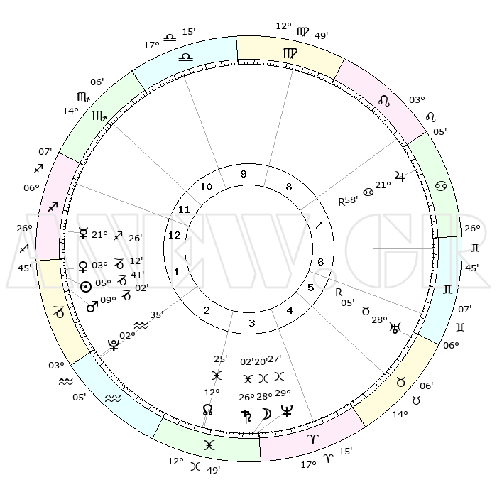 | | ΘΕΣΕΙΣ ΠΛΑΝΗΤΩΝ ΑΣΤΡΟΛΟΓΙΚΟΥ ΧΑΡΤΗ ΤΗΣ ΣΤΙΓΜΗΣ ΑΥΤΗΣ | | | | Πλανήτης | Ζώδιο | Μοίρες | Δεκαήμ. | Σε οίκο | Απόκλιση | | Ακμές των οίκων | | Ηλιος | Αιγόκερως | 05°38' | Πρώτο | 1 | 23 S 19 | | 1ος | 06°50' | Τοξότης | | Σελήνη | Ιχθείς | 27°28' | Τρίτο | 4 | 00 N 18 | | 2ος | 09°00' | Αιγόκερως | | Ερμής | Τοξότης | 21°20' | Τρίτο | 1 | 23 S 09 | | 3ος | 15°51' | Υδροχόος | | Αφροδίτη | Αιγόκερως | 03°07' | Πρώτο | 1 | 23 S 43 | | 4ος | 21°56' | Ιχθείς | | Αρης | Αιγόκερως | 08°59' | Πρώτο | 1 | 23 S 59 | | 5ος | 22°02' | Κριός | | Δίας | Καρκίνος | 21°58'R | Τρίτο | 8 | 21 N 52 | | 6ος | 16°10' | Ταύρος | | Κρόνος | Ιχθείς | 26°01' | Τρίτο | 4 | 03 S 40 | | 7ος | 06°50' | Δίδυμοι | | Ουρανός | Ταύρος | 28°05'R | Τρίτο | 6 | 19 N 32 | | 8ος | 09°00' | Καρκίνος | | Ποσειδώνας | Ιχθείς | 29°27' | Τρίτο | 4 | 01 S 27 | | 9ος | 15°51' | Λέων | | Πλούτωνας | Υδροχόος | 02°35' | Πρώτο | 2 | 23 S 15 | | 10ος | 21°56' | Παρθένος | | Β. Δεσμός | Ιχθείς | 12°26' | Δεύτερο | 3 | 06 S 54 | | 11ος | 22°02' | Ζυγός | | Ωροσκόπος | Τοξότης | 06°50' | Πρώτο | | | 12ος | 16°10' | Σκορπιός | | Μεσουράνημα | Παρθένος | 21°56' | Τρίτο | | | |