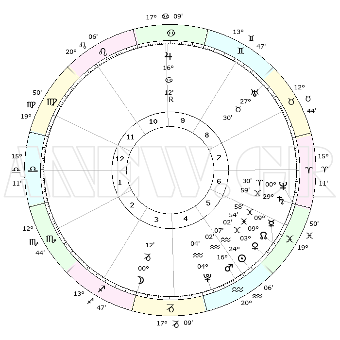 | | ΘΕΣΕΙΣ ΠΛΑΝΗΤΩΝ ΑΣΤΡΟΛΟΓΙΚΟΥ ΧΑΡΤΗ ΤΗΣ ΣΤΙΓΜΗΣ ΑΥΤΗΣ | | | | Πλανήτης | Ζώδιο | Μοίρες | Δεκαήμ. | Σε οίκο | Απόκλιση | | Ακμές των οίκων | | Ηλιος | Υδροχόος | 24°03' | Τρίτο | 5 | 13 S 30 | | 1ος | 25°44' | Παρθένος | | Σελήνη | Τοξότης | 29°24' | Τρίτο | 4 | 28 S 22 | | 2ος | 22°00' | Ζυγός | | Ερμής | Ιχθείς | 09°52' | Πρώτο | 6 | 08 S 15 | | 3ος | 22°16' | Σκορπιός | | Αφροδίτη | Ιχθείς | 02°57' | Πρώτο | 6 | 11 S 47 | | 4ος | 25°13' | Τοξότης | | Αρης | Υδροχόος | 15°58' | Δεύτερο | 5 | 17 S 04 | | 5ος | 28°15' | Αιγόκερως | | Δίας | Καρκίνος | 16°12'R | Δεύτερο | 10 | 22 N 46 | | 6ος | 28°51' | Υδροχόος | | Κρόνος | Ιχθείς | 29°59' | Τρίτο | 7 | 01 S 59 | | 7ος | 25°44' | Ιχθείς | | Ουρανός | Ταύρος | 27°29' | Τρίτο | 9 | 19 N 25 | | 8ος | 22°00' | Κριός | | Ποσειδώνας | Κριός | 00°30' | Πρώτο | 7 | 01 S 00 | | 9ος | 22°16' | Ταύρος | | Πλούτωνας | Υδροχόος | 04°04' | Πρώτο | 5 | 22 S 57 | | 10ος | 25°13' | Δίδυμοι | | Β. Δεσμός | Ιχθείς | 09°54' | Πρώτο | 6 | 07 S 51 | | 11ος | 28°15' | Καρκίνος | | Ωροσκόπος | Παρθένος | 25°44' | Τρίτο | | | 12ος | 28°51' | Λέων | | Μεσουράνημα | Δίδυμοι | 25°13' | Τρίτο | | | |
