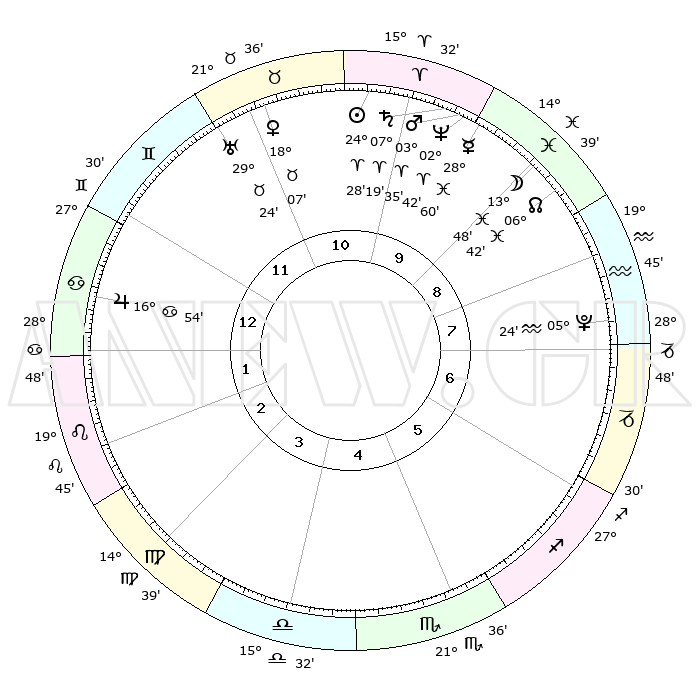 | | ΘΕΣΕΙΣ ΠΛΑΝΗΤΩΝ ΑΣΤΡΟΛΟΓΙΚΟΥ ΧΑΡΤΗ ΤΗΣ ΣΤΙΓΜΗΣ ΑΥΤΗΣ | | | | Πλανήτης | Ζώδιο | Μοίρες | Δεκαήμ. | Σε οίκο | Απόκλιση | | Ακμές των οίκων | | Ηλιος | Κριός | 24°21' | Τρίτο | 11 | 09 N 26 | | 1ος | 21°24' | Δίδυμοι | | Σελήνη | Ιχθείς | 12°12' | Δεύτερο | 10 | 06 S 39 | | 2ος | 12°54' | Καρκίνος | | Ερμής | Ιχθείς | 28°50' | Τρίτο | 10 | 02 S 49 | | 3ος | 04°17' | Λέων | | Αφροδίτη | Ταύρος | 17°58' | Δεύτερο | 12 | 17 N 19 | | 4ος | 29°19' | Λέων | | Αρης | Κριός | 03°29' | Πρώτο | 11 | 00 N 29 | | 5ος | 01°45' | Ζυγός | | Δίας | Καρκίνος | 16°54' | Δεύτερο | 2 | 22 N 45 | | 6ος | 12°04' | Σκορπιός | | Κρόνος | Κριός | 07°18' | Πρώτο | 11 | 00 N 56 | | 7ος | 21°24' | Τοξότης | | Ουρανός | Ταύρος | 29°23' | Τρίτο | 12 | 19 N 51 | | 8ος | 12°54' | Αιγόκερως | | Ποσειδώνας | Κριός | 02°42' | Πρώτο | 11 | 00 S 08 | | 9ος | 04°17' | Υδροχόος | | Πλούτωνας | Υδροχόος | 05°24' | Πρώτο | 9 | 22 S 47 | | 10ος | 29°19' | Υδροχόος | | Β. Δεσμός | Ιχθείς | 06°42' | Πρώτο | 10 | 09 S 03 | | 11ος | 01°45' | Κριός | | Ωροσκόπος | Δίδυμοι | 21°24' | Τρίτο | | | 12ος | 12°04' | Ταύρος | | Μεσουράνημα | Υδροχόος | 29°19' | Τρίτο | | | |