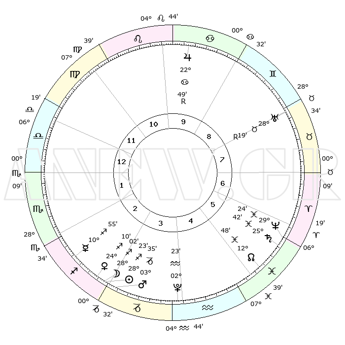 | | ΘΕΣΕΙΣ ΠΛΑΝΗΤΩΝ ΑΣΤΡΟΛΟΓΙΚΟΥ ΧΑΡΤΗ ΤΗΣ ΣΤΙΓΜΗΣ ΑΥΤΗΣ | | | | Πλανήτης | Ζώδιο | Μοίρες | Δεκαήμ. | Σε οίκο | Απόκλιση | | Ακμές των οίκων | | Ηλιος | Τοξότης | 28°19' | Τρίτο | 3 | 23 S 25 | | 1ος | 08°47' | Ζυγός | | Σελήνη | Τοξότης | 27°09' | Τρίτο | 3 | 28 S 14 | | 2ος | 05°58' | Σκορπιός | | Ερμής | Τοξότης | 10°49' | Δεύτερο | 3 | 21 S 10 | | 3ος | 06°45' | Τοξότης | | Αφροδίτη | Τοξότης | 24°04' | Τρίτο | 3 | 23 S 20 | | 4ος | 09°54' | Αιγόκερως | | Αρης | Αιγόκερως | 03°32' | Πρώτο | 3 | 24 S 12 | | 5ος | 12°49' | Υδροχόος | | Δίας | Καρκίνος | 22°50'R | Τρίτο | 10 | 21 N 42 | | 6ος | 12°53' | Ιχθείς | | Κρόνος | Ιχθείς | 25°42' | Τρίτο | 6 | 03 S 49 | | 7ος | 08°47' | Κριός | | Ουρανός | Ταύρος | 28°19'R | Τρίτο | 8 | 19 N 35 | | 8ος | 05°58' | Ταύρος | | Ποσειδώνας | Ιχθείς | 29°24' | Τρίτο | 6 | 01 S 28 | | 9ος | 06°45' | Δίδυμοι | | Πλούτωνας | Υδροχόος | 02°23' | Πρώτο | 4 | 23 S 18 | | 10ος | 09°54' | Καρκίνος | | Β. Δεσμός | Ιχθείς | 12°48' | Δεύτερο | 5 | 06 S 45 | | 11ος | 12°49' | Λέων | | Ωροσκόπος | Ζυγός | 08°47' | Πρώτο | | | 12ος | 12°53' | Παρθένος | | Μεσουράνημα | Καρκίνος | 09°54' | Πρώτο | | | |