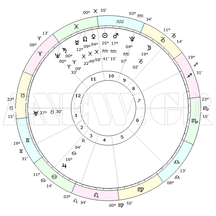 | | ΘΕΣΕΙΣ ΠΛΑΝΗΤΩΝ ΑΣΤΡΟΛΟΓΙΚΟΥ ΧΑΡΤΗ ΤΗΣ ΣΤΙΓΜΗΣ ΑΥΤΗΣ | | | | Πλανήτης | Ζώδιο | Μοίρες | Δεκαήμ. | Σε οίκο | Απόκλιση | | Ακμές των οίκων | | Ηλιος | Υδροχόος | 25°37' | Τρίτο | 11 | 12 S 59 | | 1ος | 17°28' | Κριός | | Σελήνη | Αιγόκερως | 18°11' | Δεύτερο | 10 | 26 S 15 | | 2ος | 23°11' | Ταύρος | | Ερμής | Ιχθείς | 12°15' | Δεύτερο | 12 | 07 S 03 | | 3ος | 18°09' | Δίδυμοι | | Αφροδίτη | Ιχθείς | 04°53' | Πρώτο | 12 | 11 S 05 | | 4ος | 09°56' | Καρκίνος | | Αρης | Υδροχόος | 17°11' | Δεύτερο | 11 | 16 S 42 | | 5ος | 03°15' | Λέων | | Δίας | Καρκίνος | 16°05'R | Δεύτερο | 4 | 22 N 47 | | 6ος | 03°35' | Παρθένος | | Κρόνος | Κριός | 00°09' | Πρώτο | 12 | 01 S 55 | | 7ος | 17°28' | Ζυγός | | Ουρανός | Ταύρος | 27°30' | Τρίτο | 2 | 19 N 25 | | 8ος | 23°11' | Σκορπιός | | Ποσειδώνας | Κριός | 00°33' | Πρώτο | 12 | 00 S 59 | | 9ος | 18°09' | Τοξότης | | Πλούτωνας | Υδροχόος | 04°07' | Πρώτο | 11 | 22 S 57 | | 10ος | 09°56' | Αιγόκερως | | Β. Δεσμός | Ιχθείς | 09°49' | Πρώτο | 12 | 07 S 53 | | 11ος | 03°15' | Υδροχόος | | Ωροσκόπος | Κριός | 17°28' | Δεύτερο | | | 12ος | 03°35' | Ιχθείς | | Μεσουράνημα | Αιγόκερως | 09°56' | Πρώτο | | | |